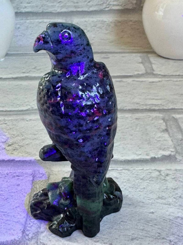 Beautiful Ruby Zoisite Parrot Carving with UV Reaction ✨