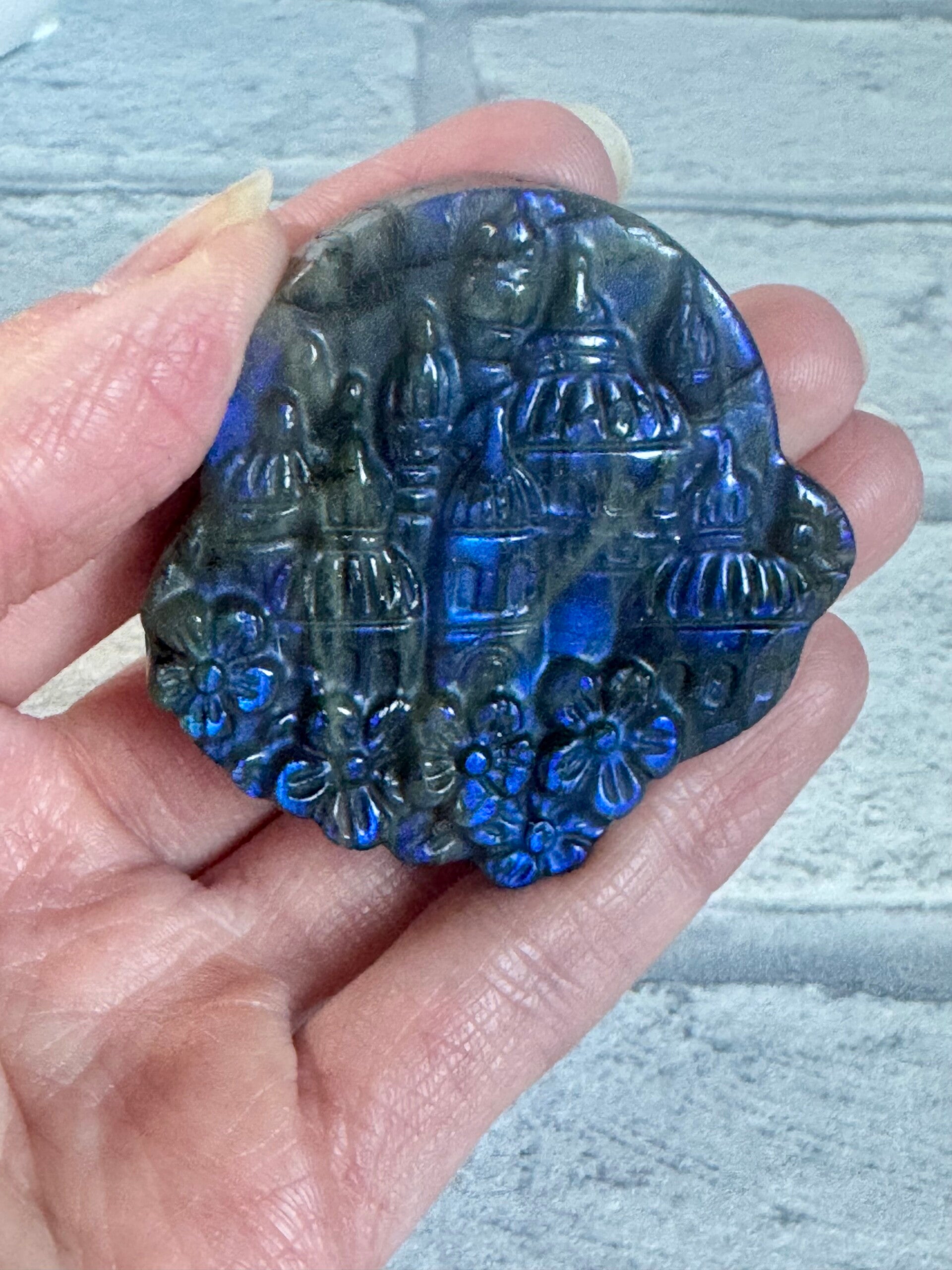 Labradorite Castle Carving with strong Blue Flash ✨