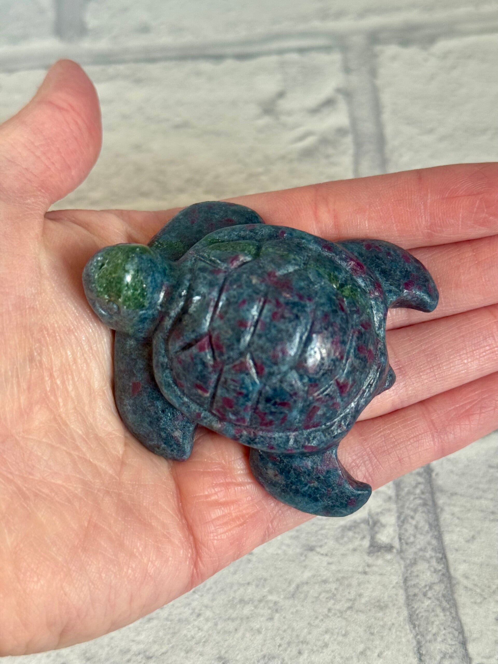 Ruby Kyanite Turtle Carving with beautiful UV reaction ✨