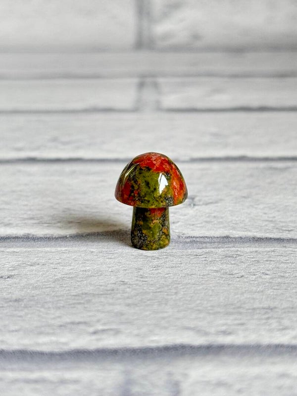 Mini Mushroom Carvings in Kambaba, Unakite, Mahogany Obsidian, Sodalite, Rhodonite, Moss Agate, Strawberry Quartz, Green Aventurine, African Bloodstone and Ocean Jasper materials ✨