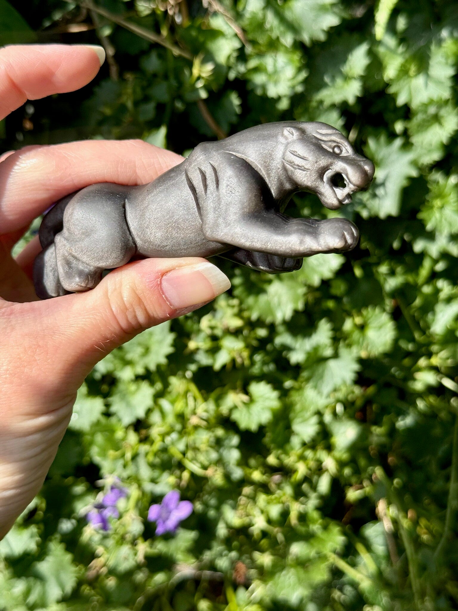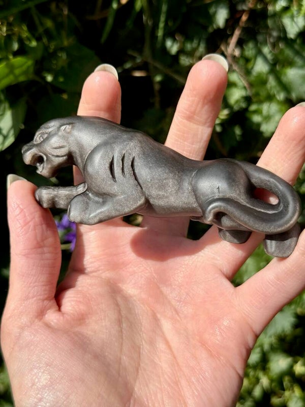 Stunning Large Silver Obsidian Panther Carving with a beautiful silver flash ✨