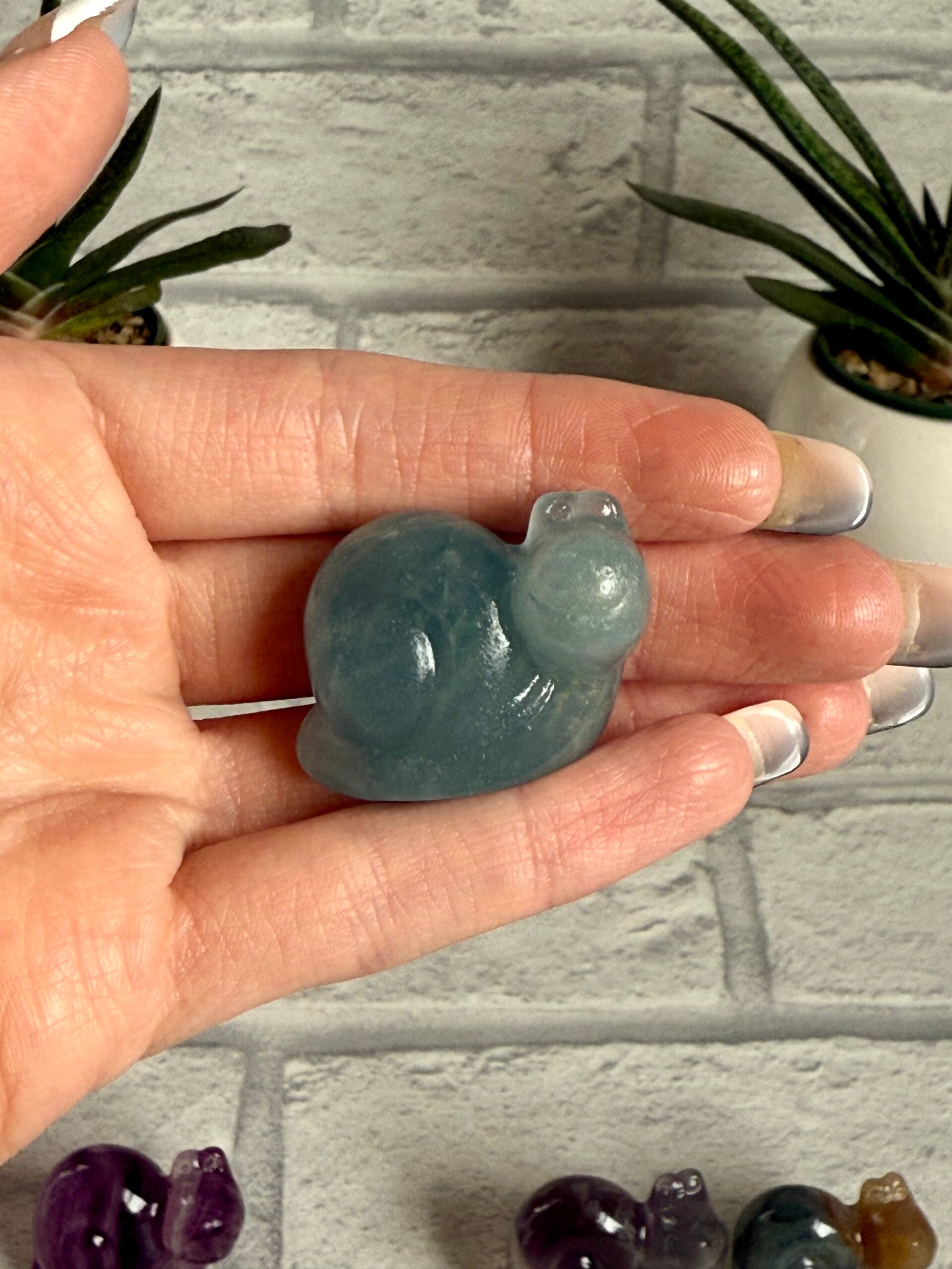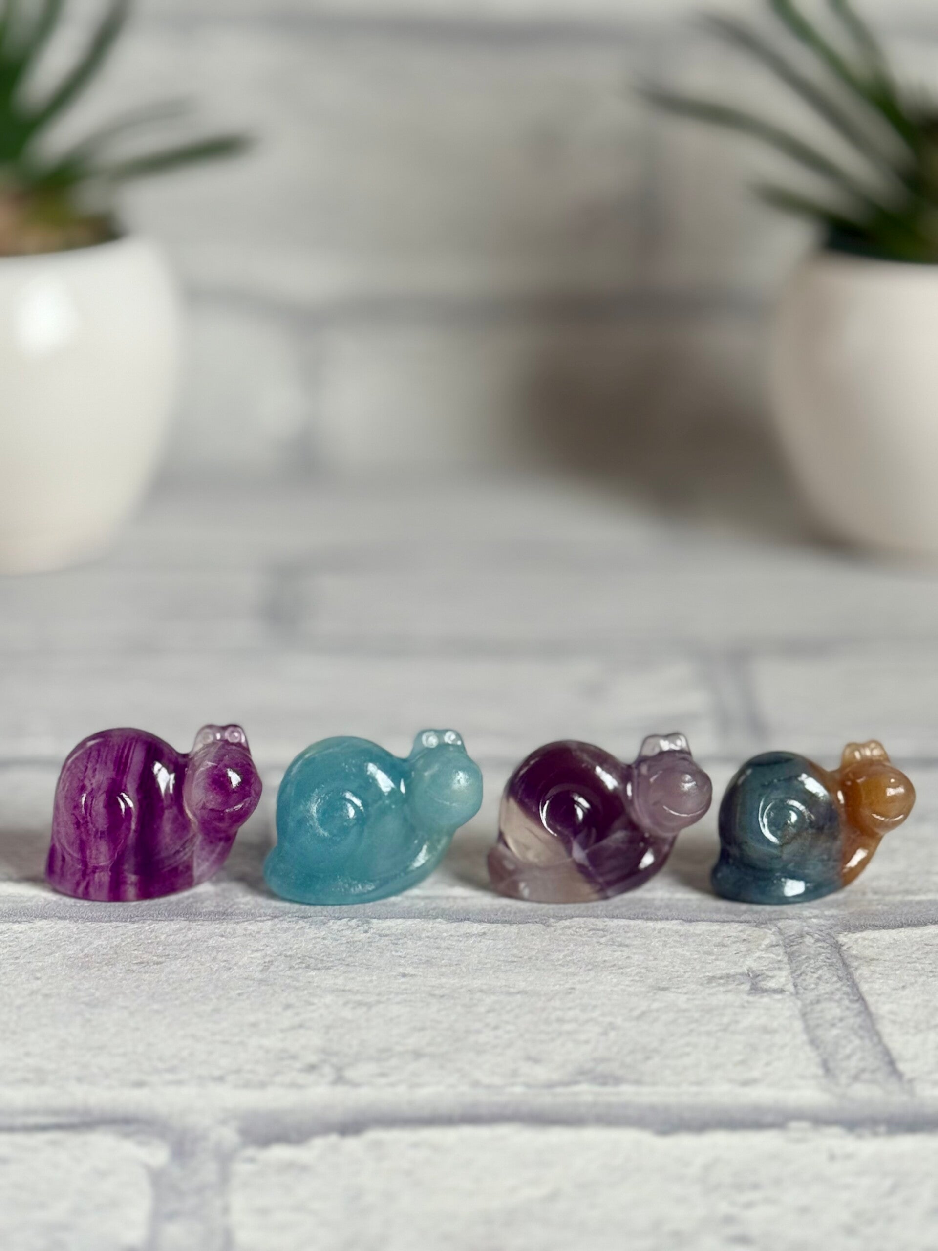 Cute Snail Carvings in Purple Fluorite, Blue Fluorite, Fluorite and Ovean Jasper materials ✨