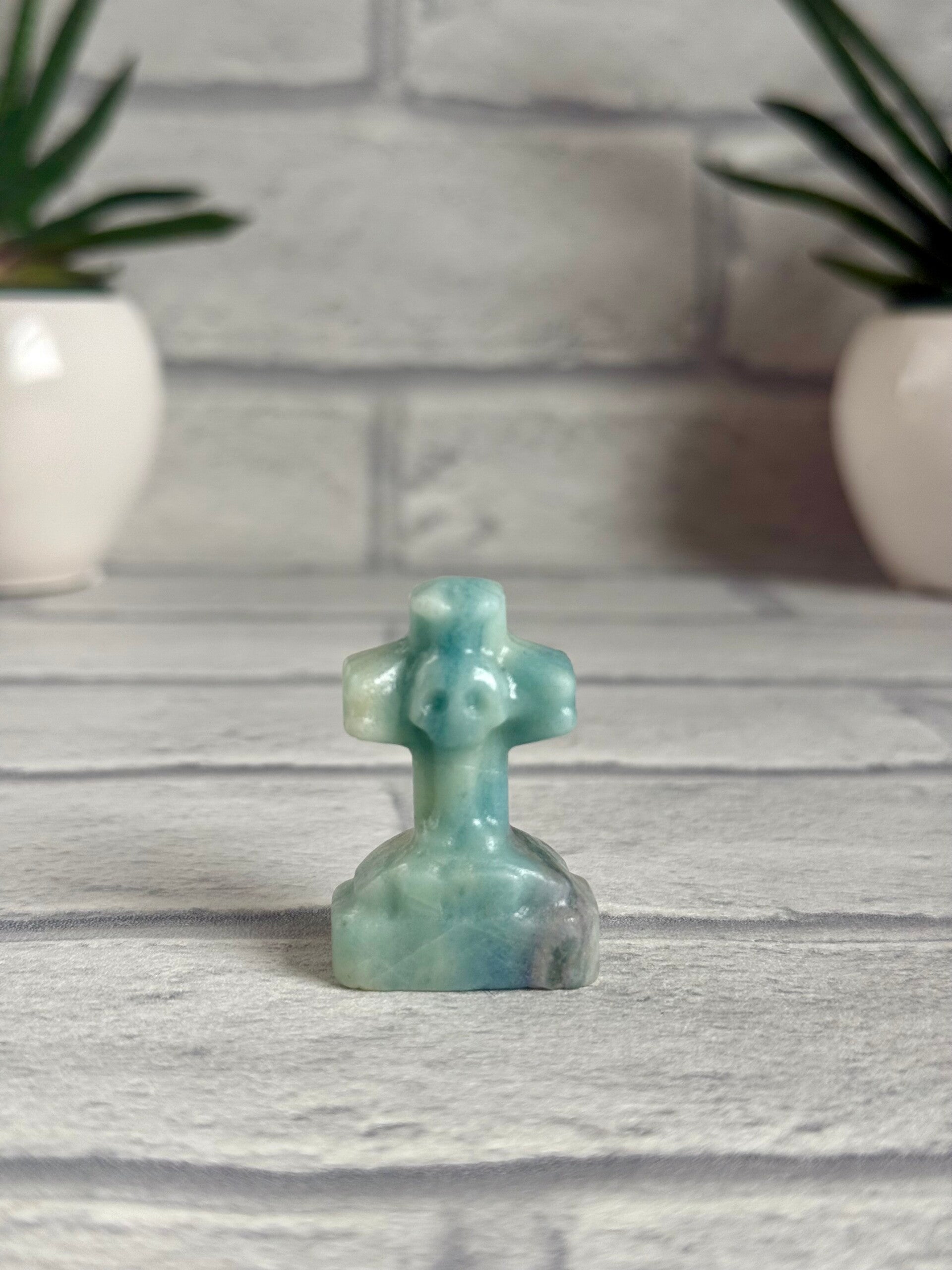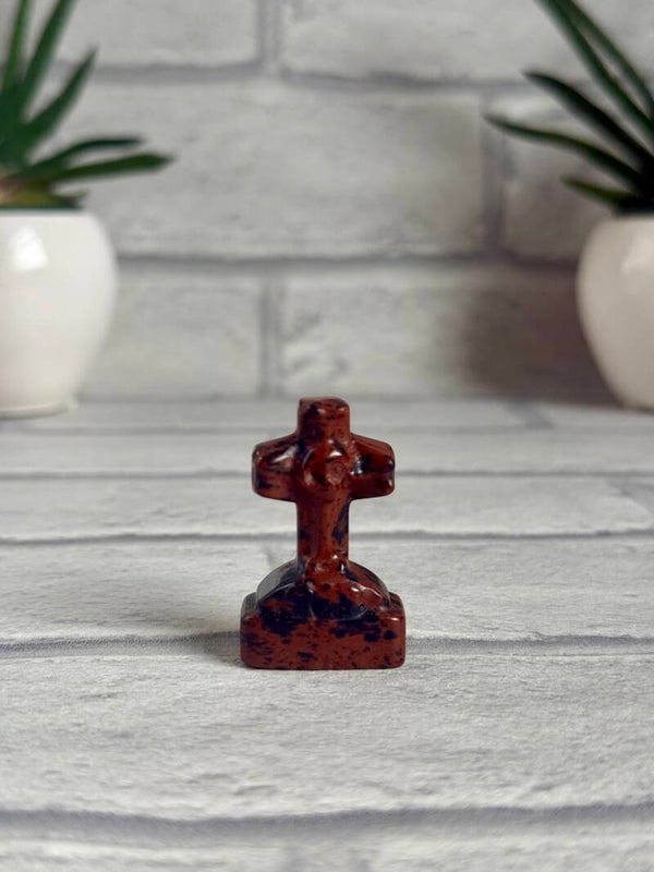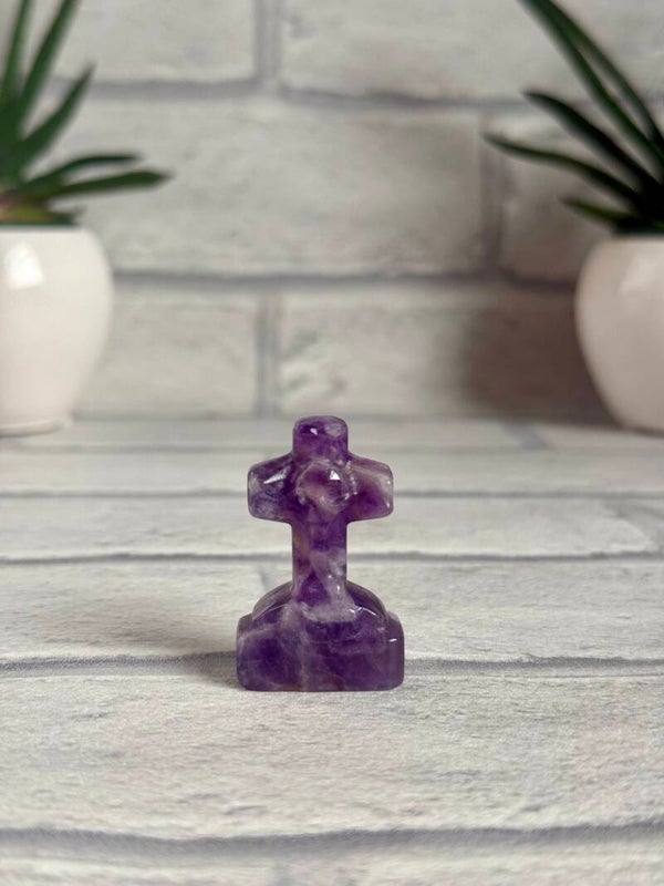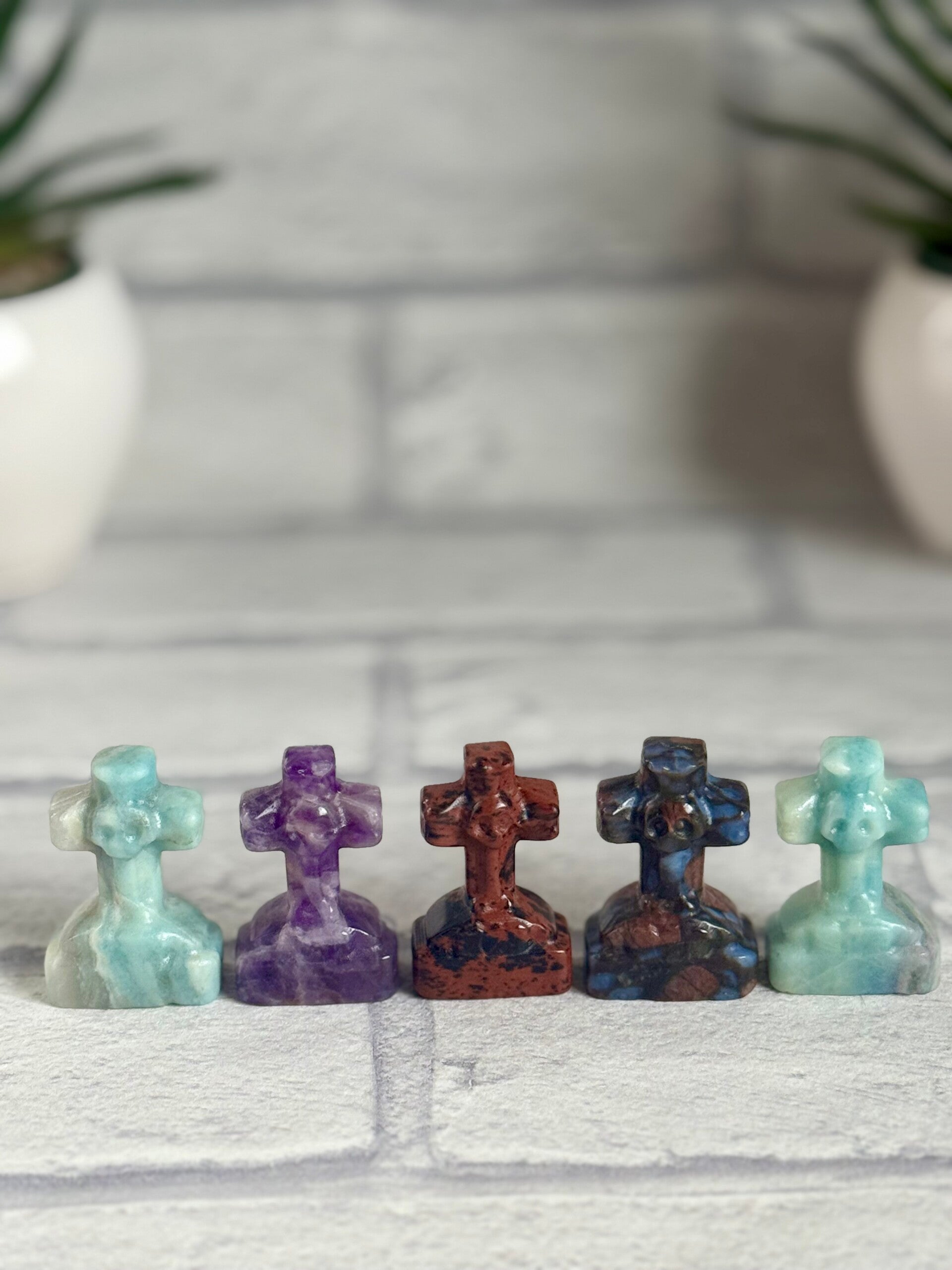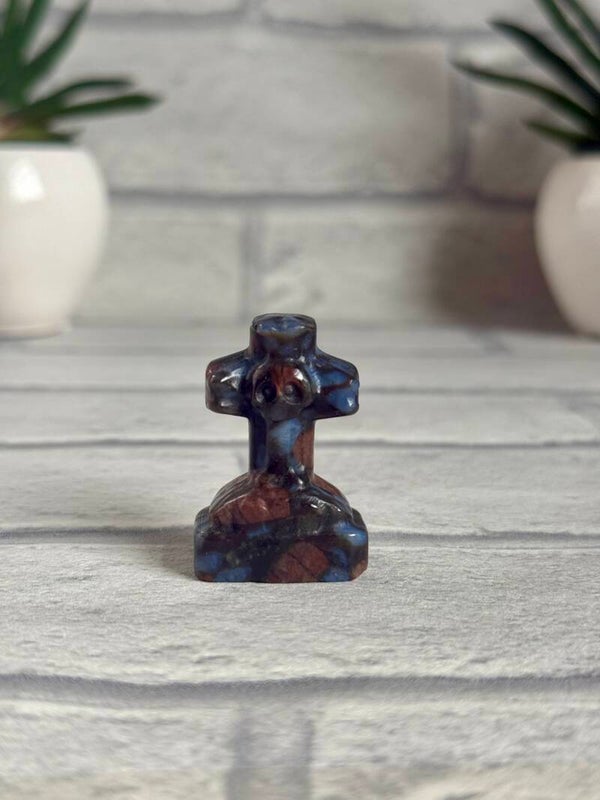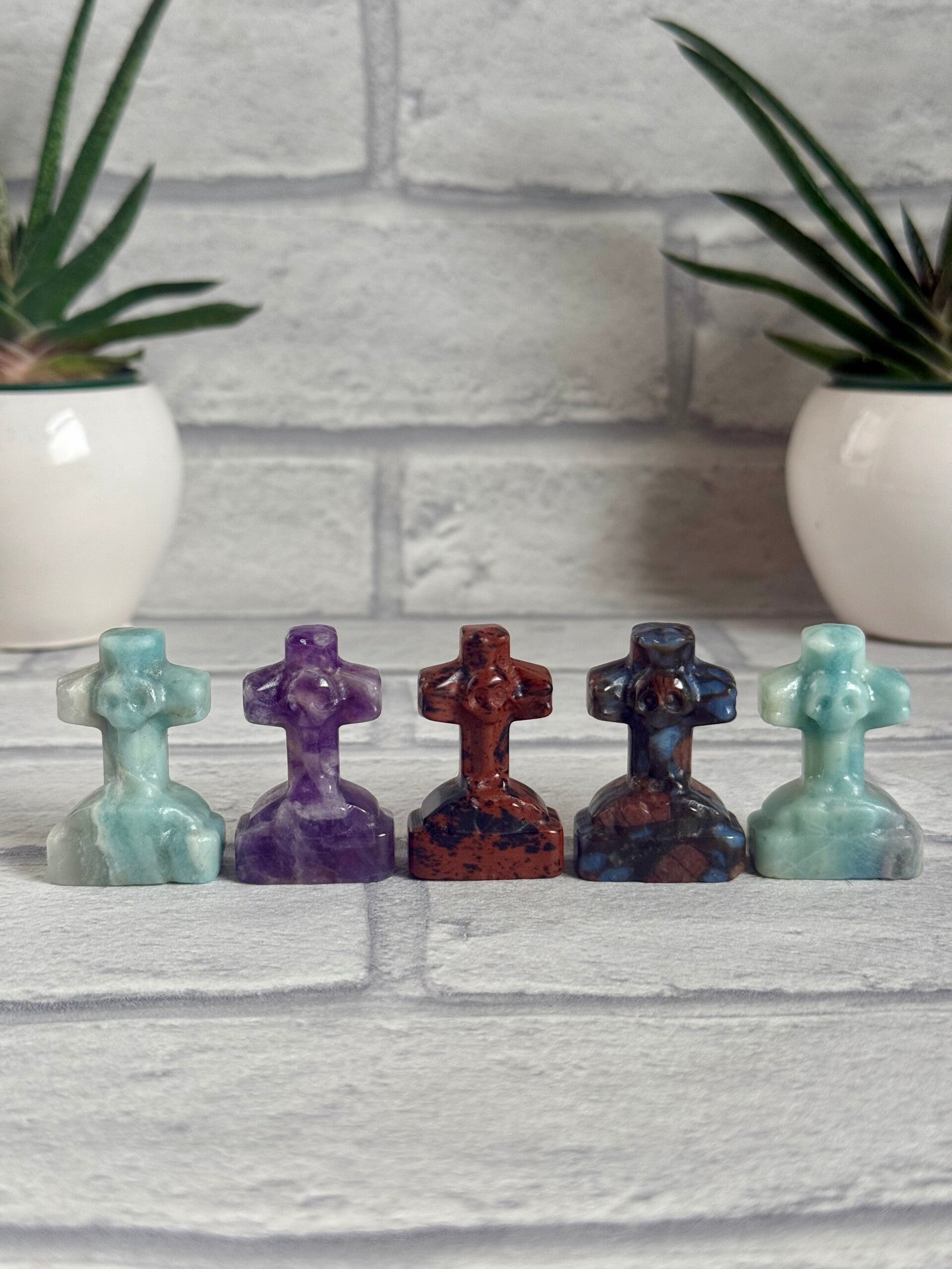 Spooky Cross Gravestones with Skull in Sky Blue Calcite, Dream Amethyst, Mahogony Obsidian and Que Sera materials ✨