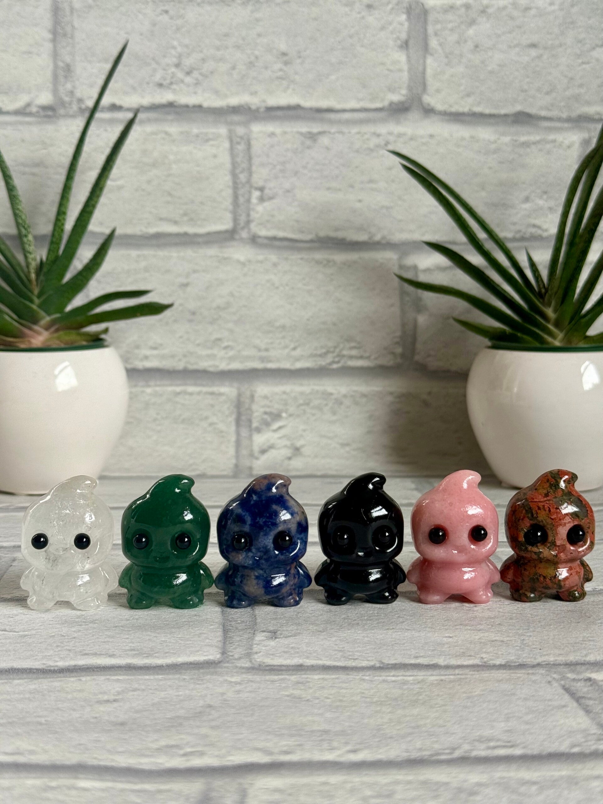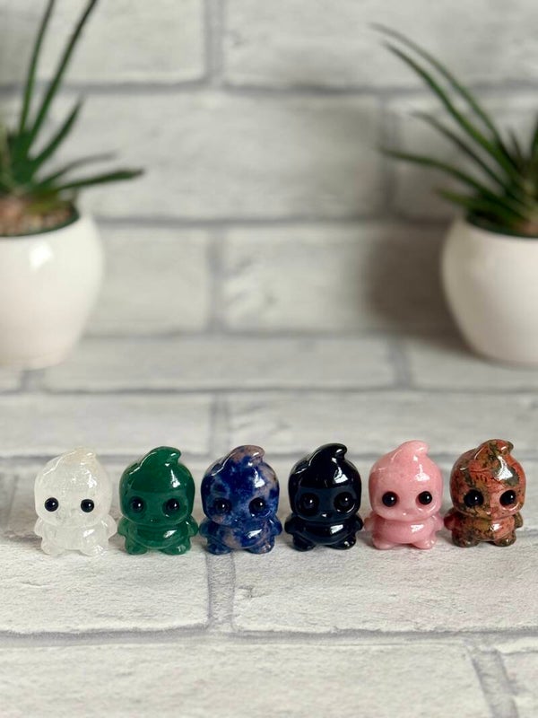Adorable Baby Ghost Carvings in Clear Quartz, Green Aventurine, Sodalite, Black Obsidian, Pink Opal and Unakite materials ✨