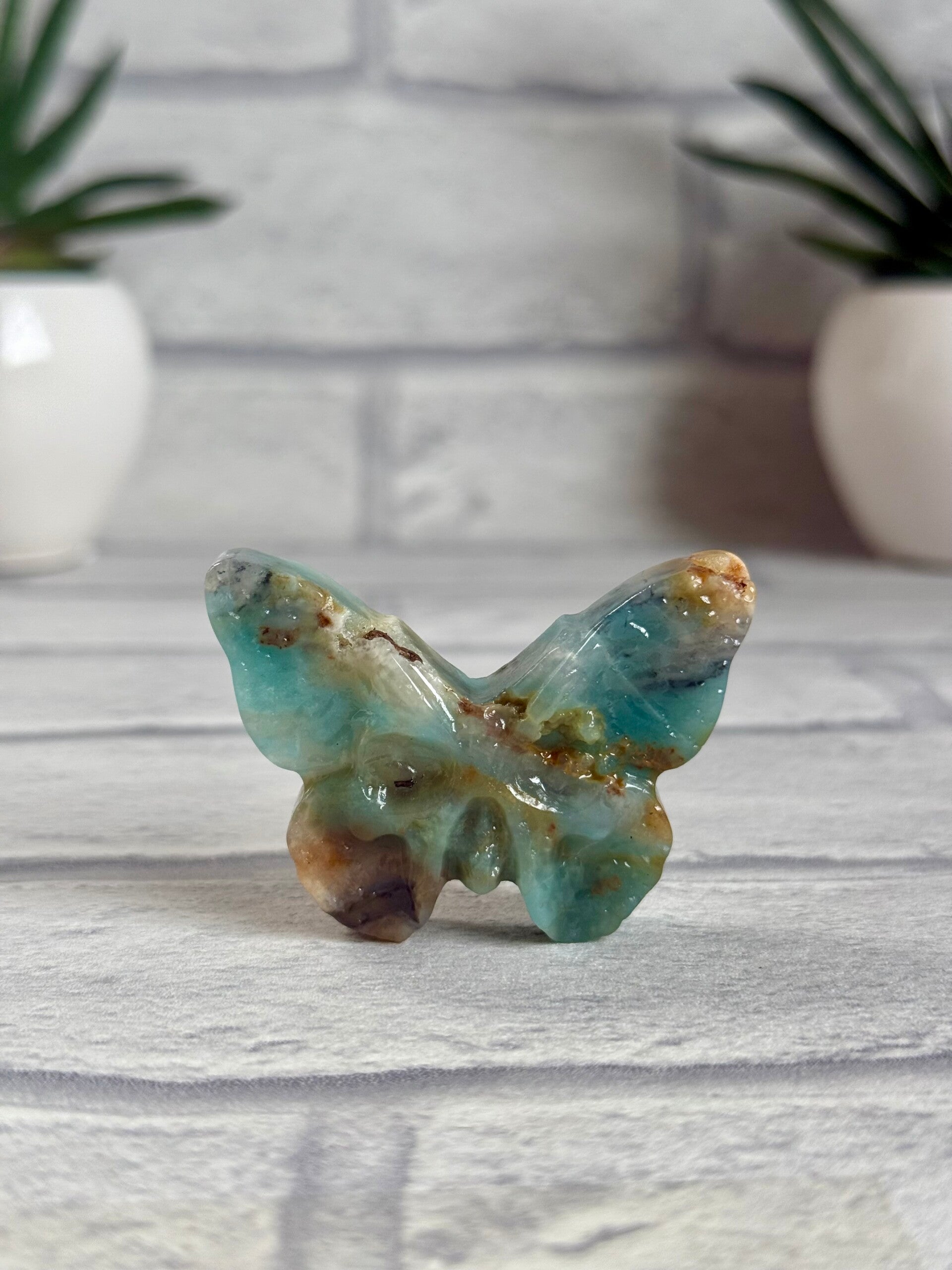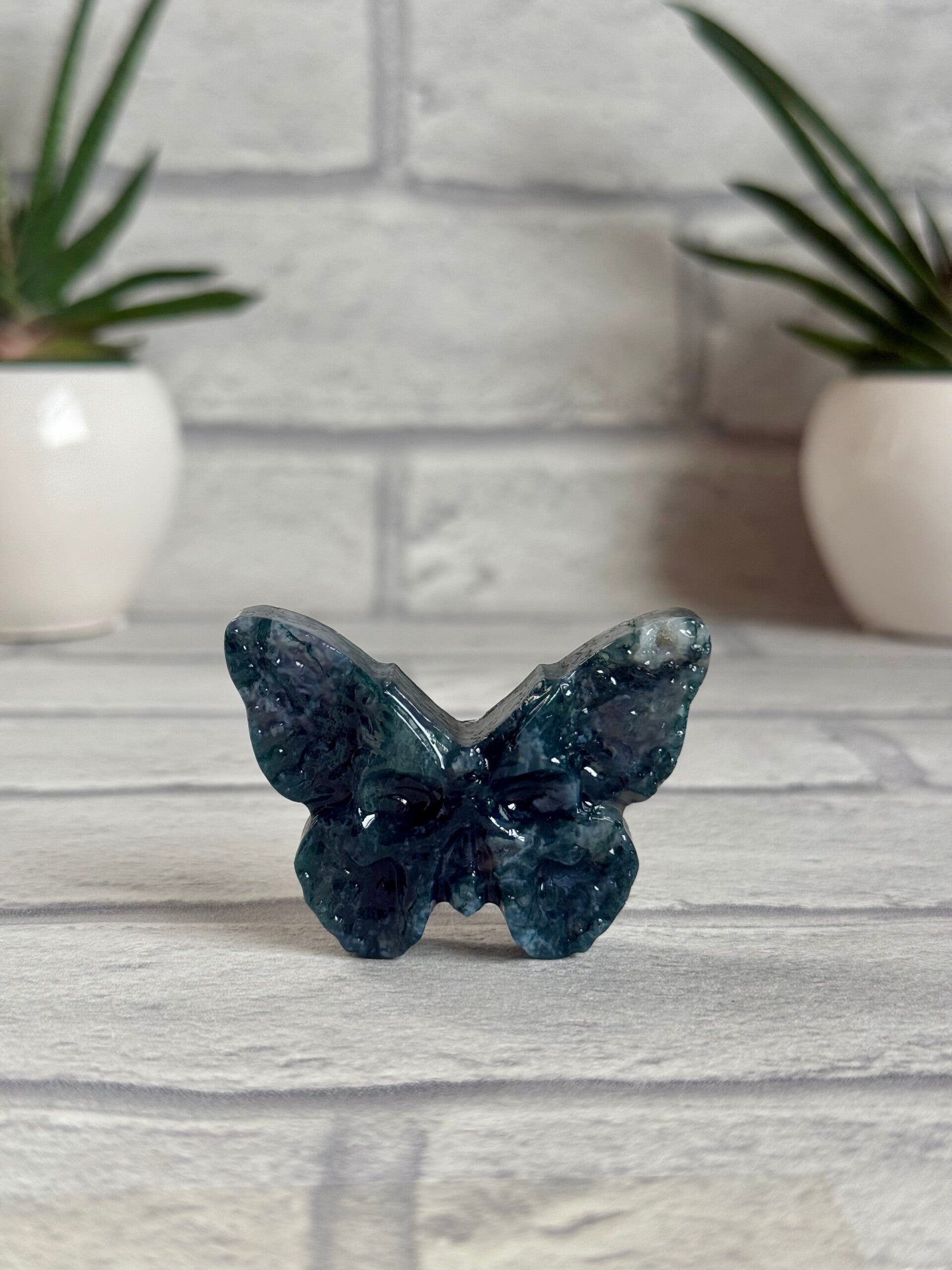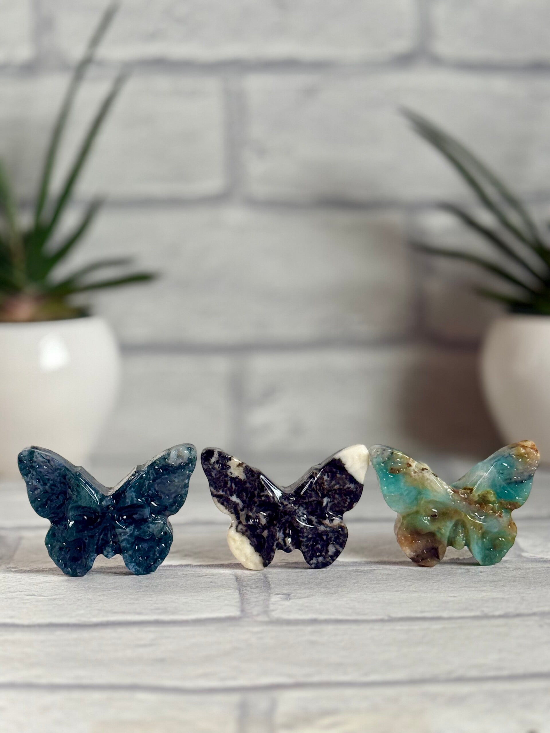 Gorgeous Death Moth Carvings in Blue Fluorite, Zebra Jasper and Carribean Calcite materials ✨
