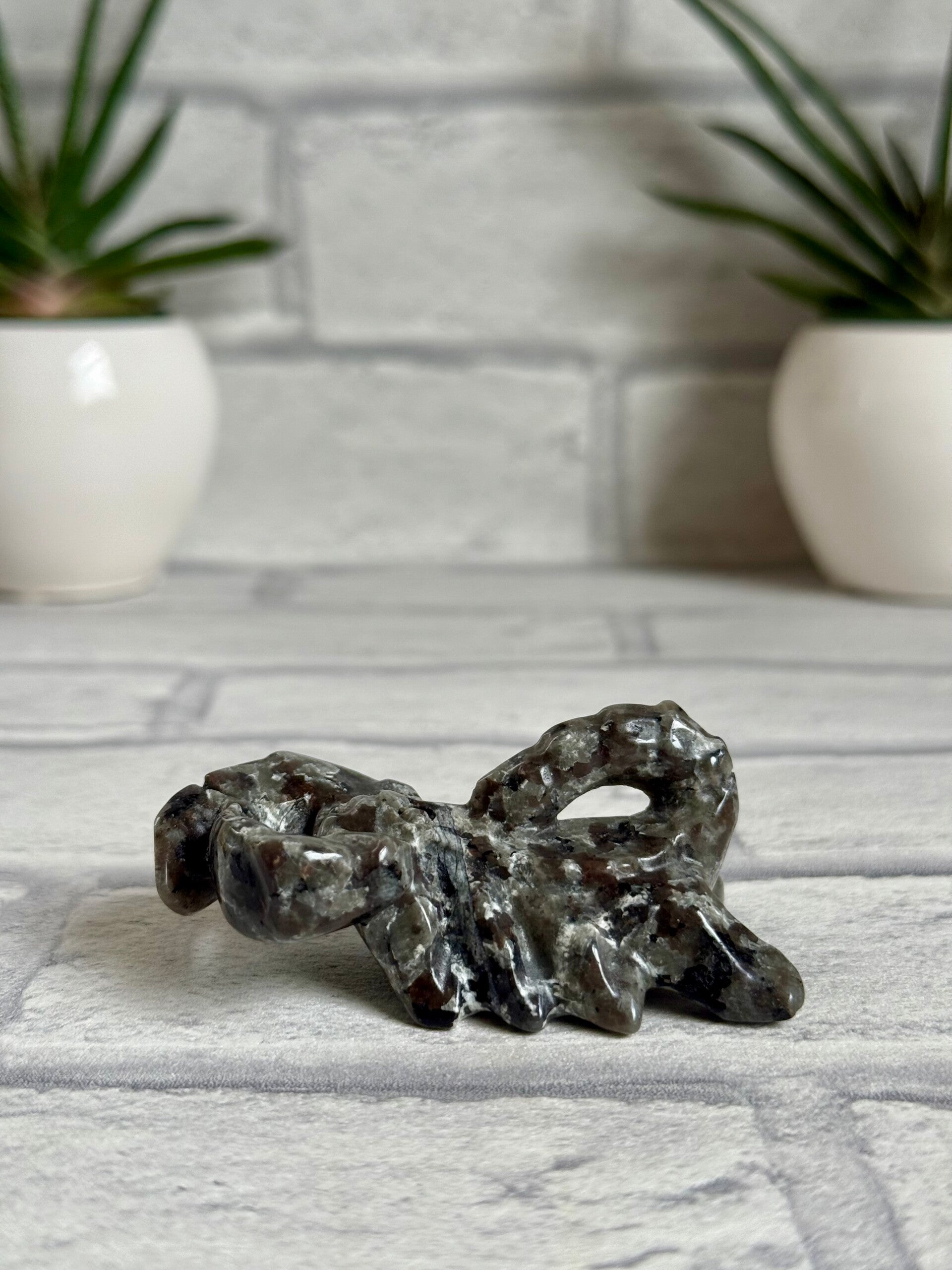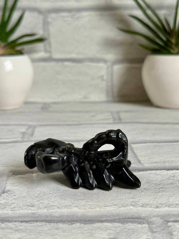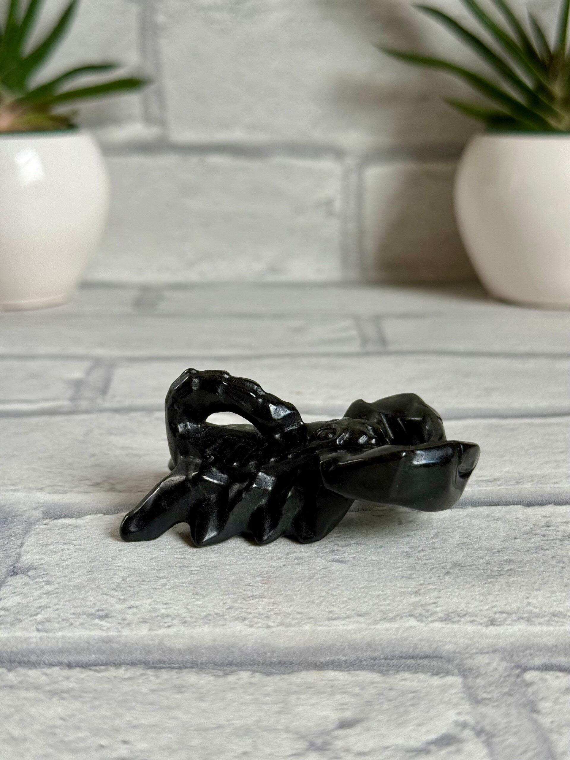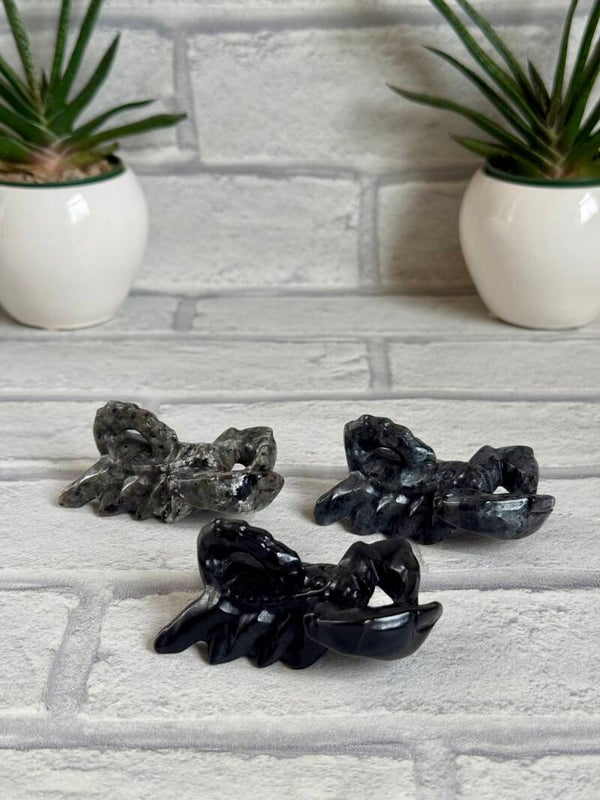 Scorpion Carvings in Yooperlite, Black Obsidian and Larvikite materials ✨