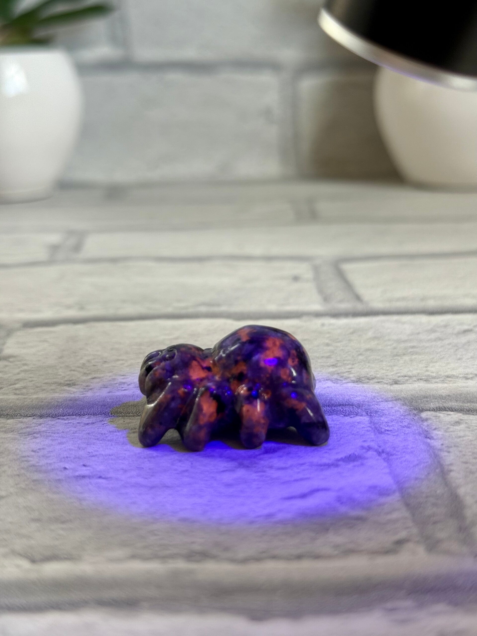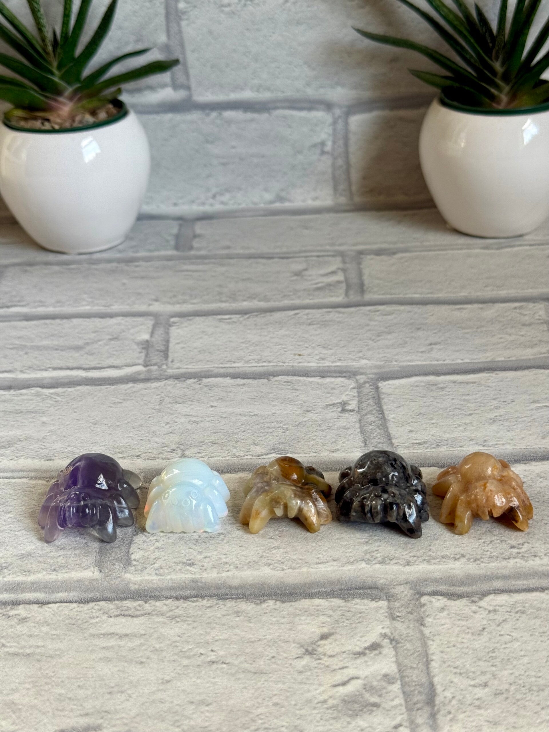 Spooky Spider Carvings in Purple Fluorite, Opalite, Chocolate Jasper, Yooperlite and Orange Calcite materials ✨