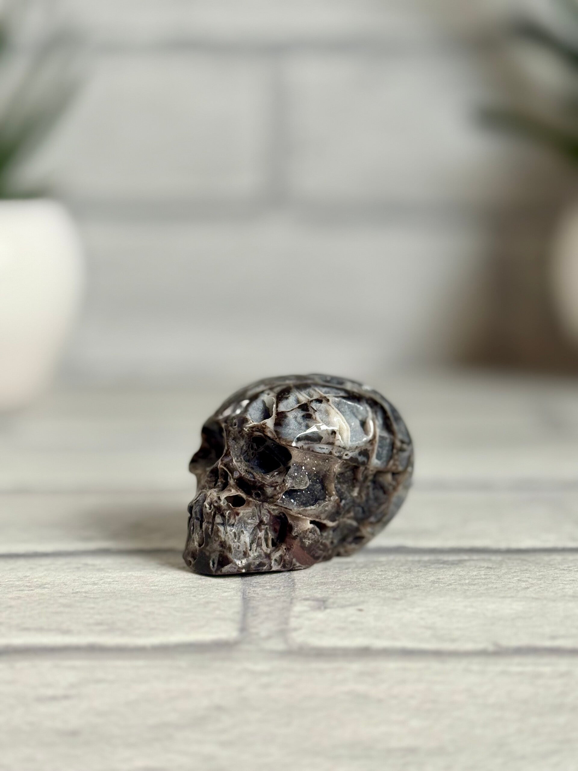 Skull Carvings in Sphalerite and Yooperlite materials ✨