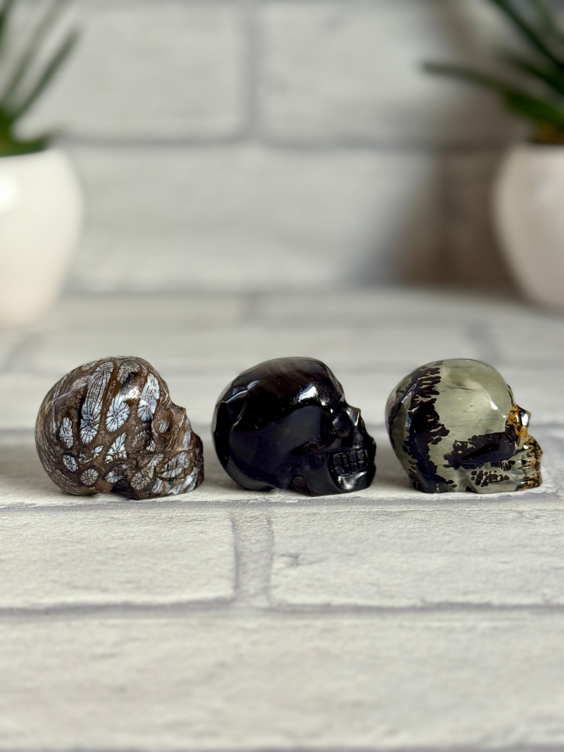 Skull Carvings in Fossil Jasper, Silver Obsidian and Picture Jasper materials ✨