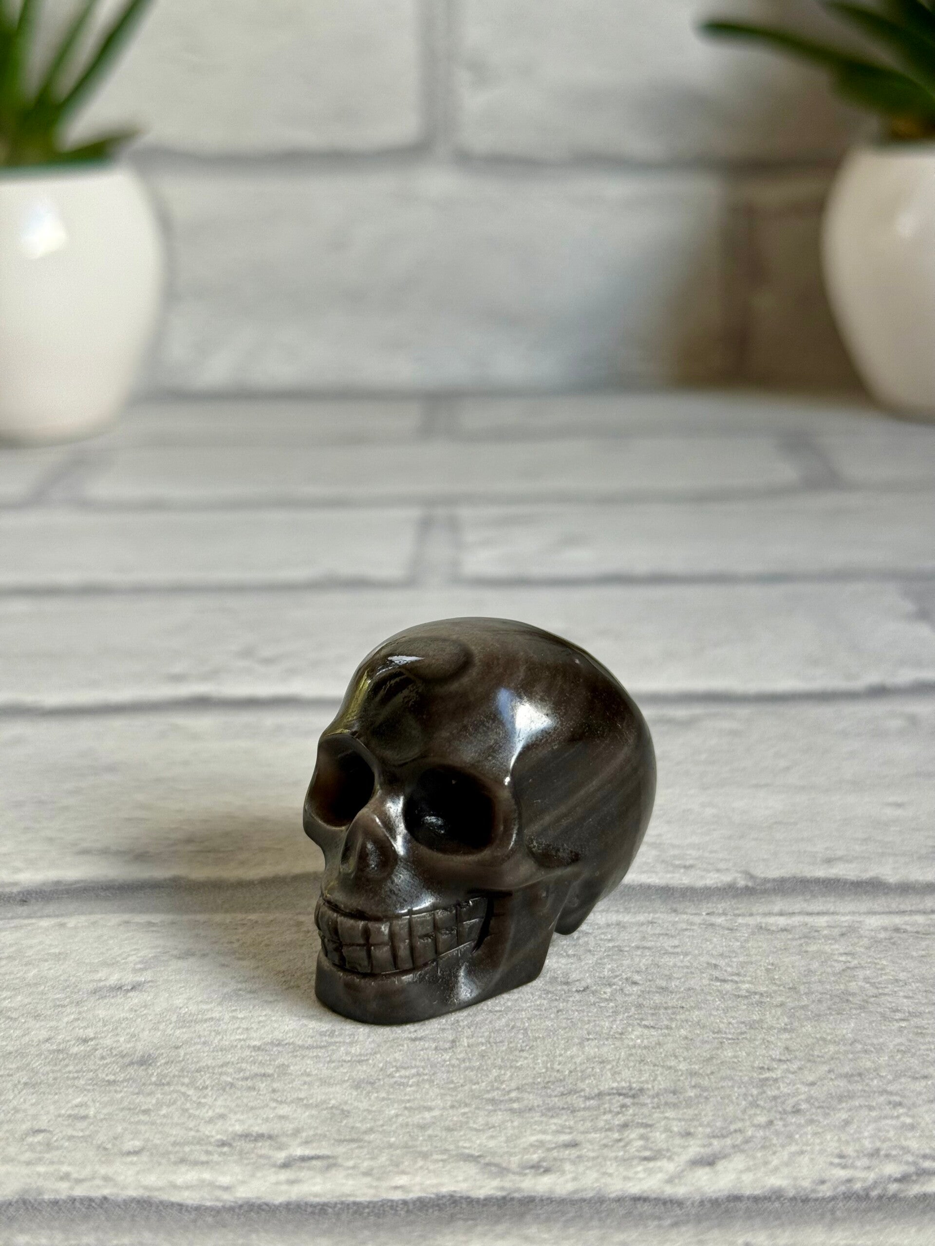 Spooky Skull Carvings in Fossil Jasper, Silver Obsidian and Picture Jasper materials ✨
