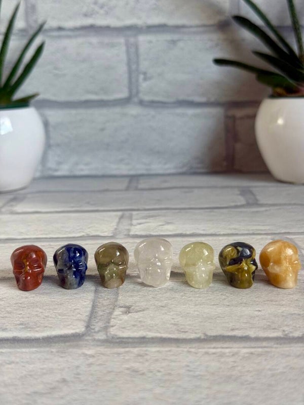 Spooky Skull Carvings in Red Jasper, Sodalite, Amethyst, Clear Quartz, Citrine, Green Jade Obsidian and Orange Calcite materials ✨
