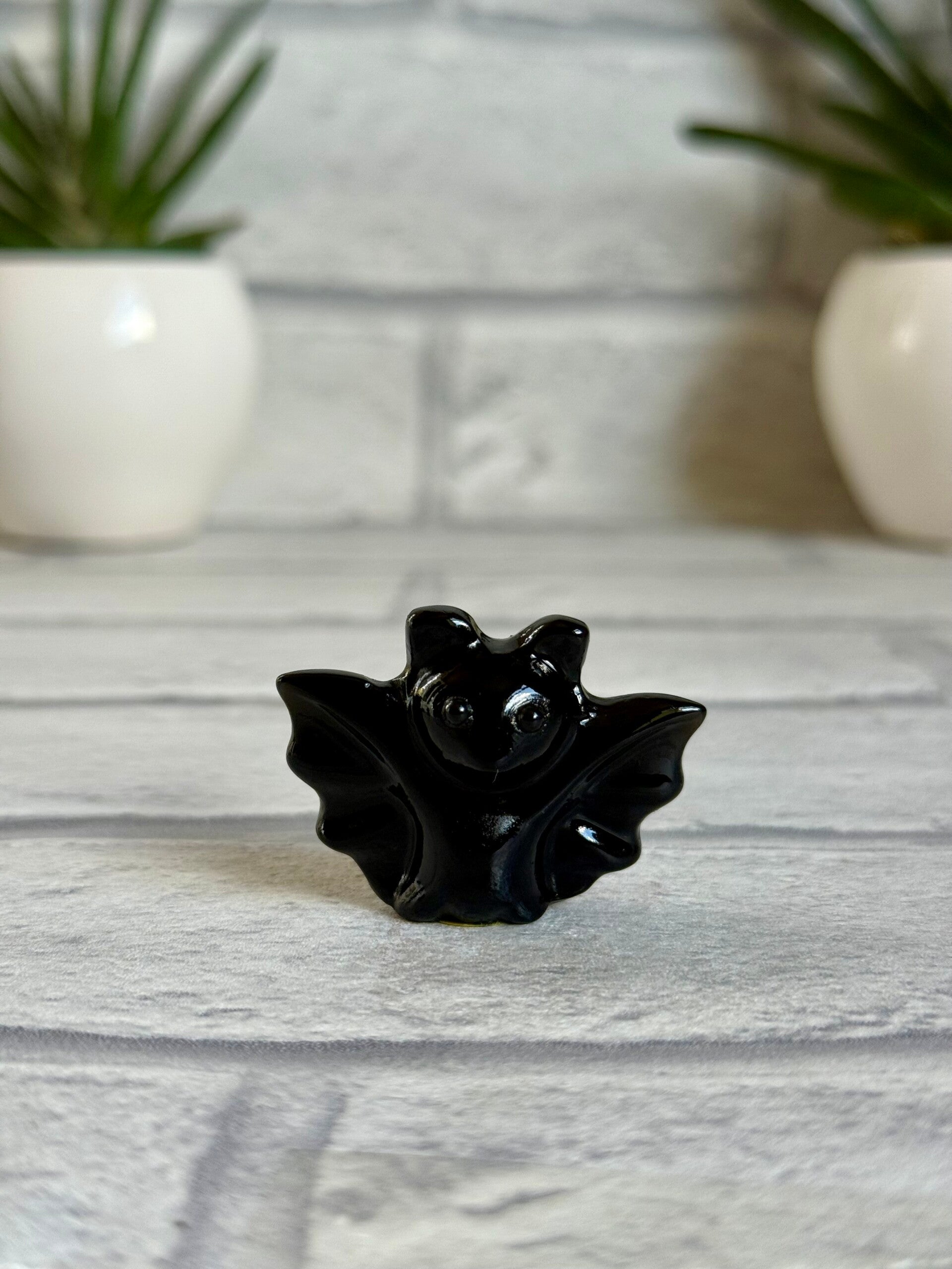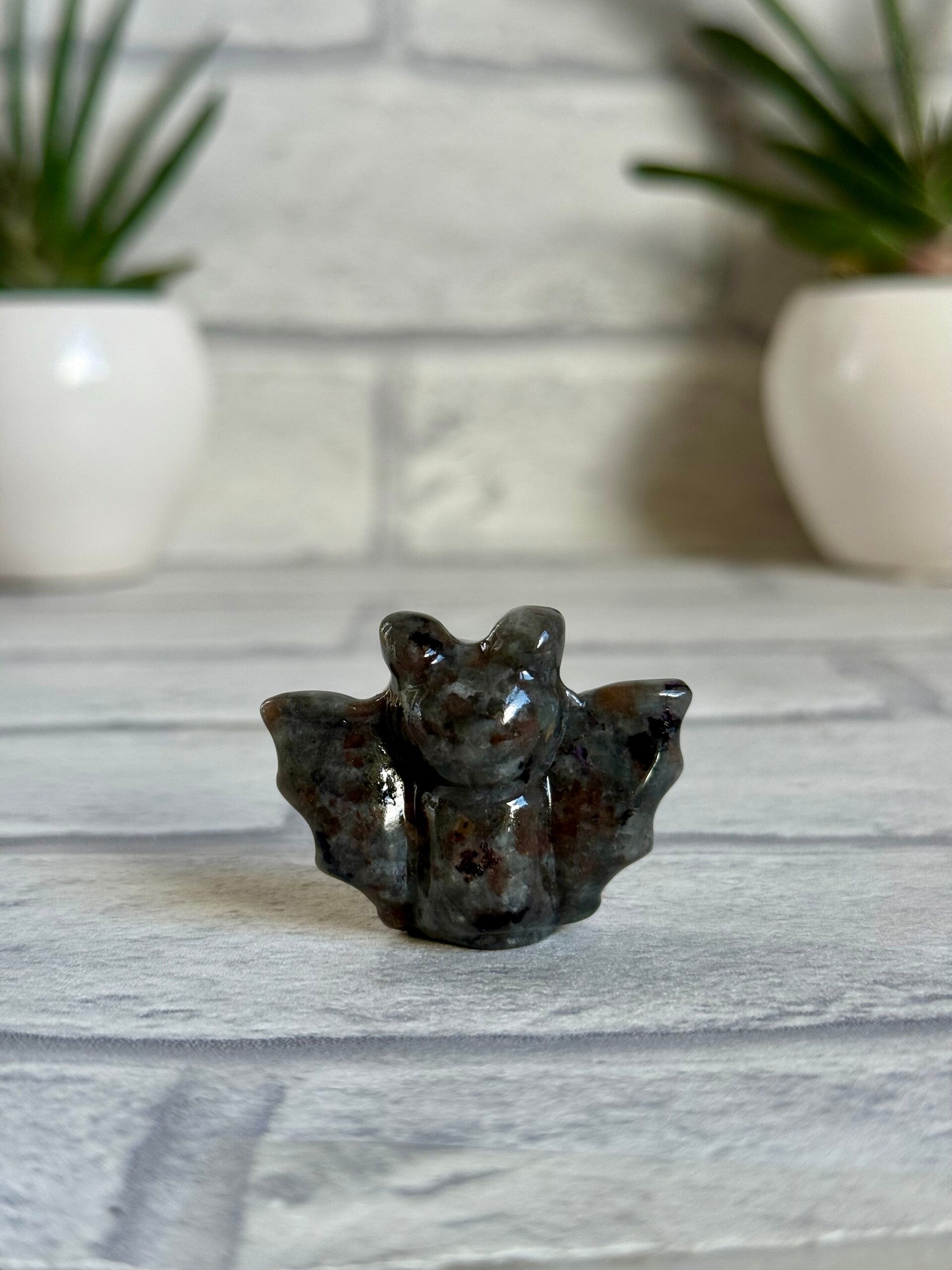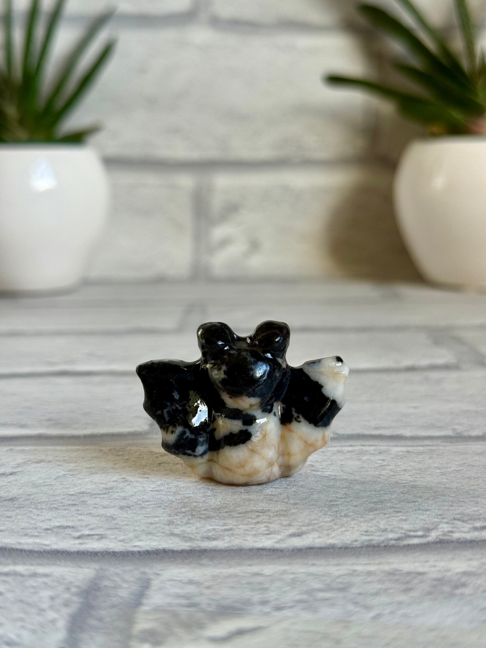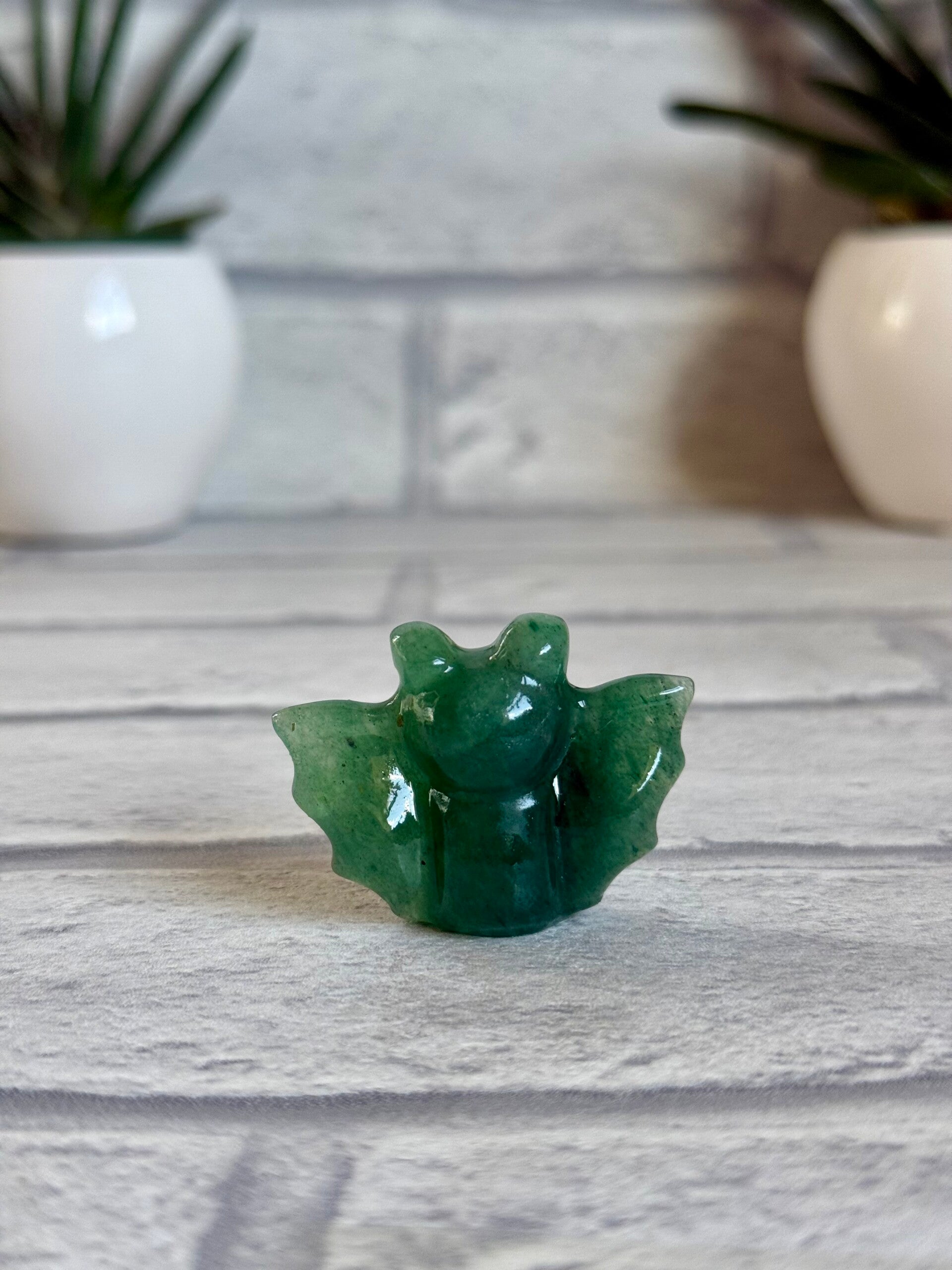 Cute Bat Carvings in Green Tree Jasper, Pink Zebra Jasper, Yooperlite, Black Obsidian, and Green Strawberry Quartz materials ✨