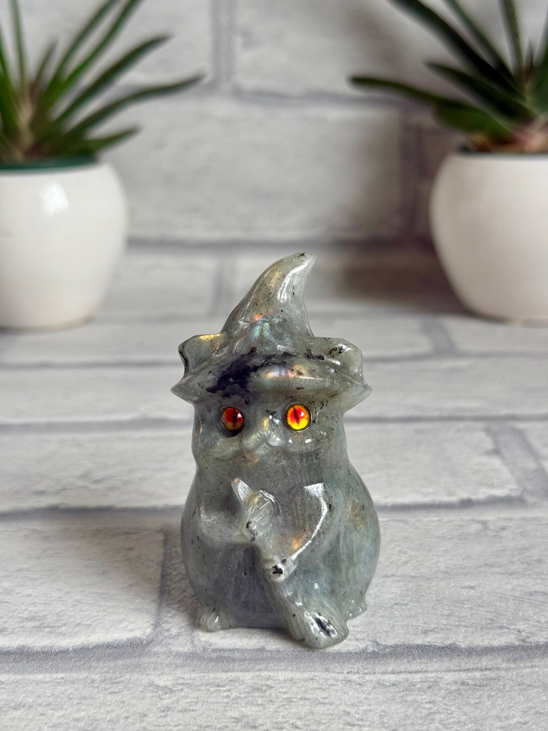Gorgeous Labradorite Witch Cat Carving with beautiful rainbow flash ✨