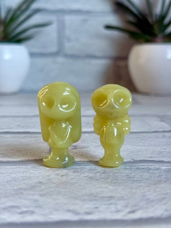 Pair Of Jack And Sally Carvings in Fire Quartz, Lemon Jade and Bamboo Jasper ✨