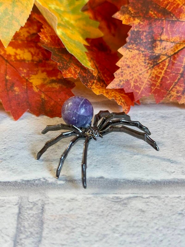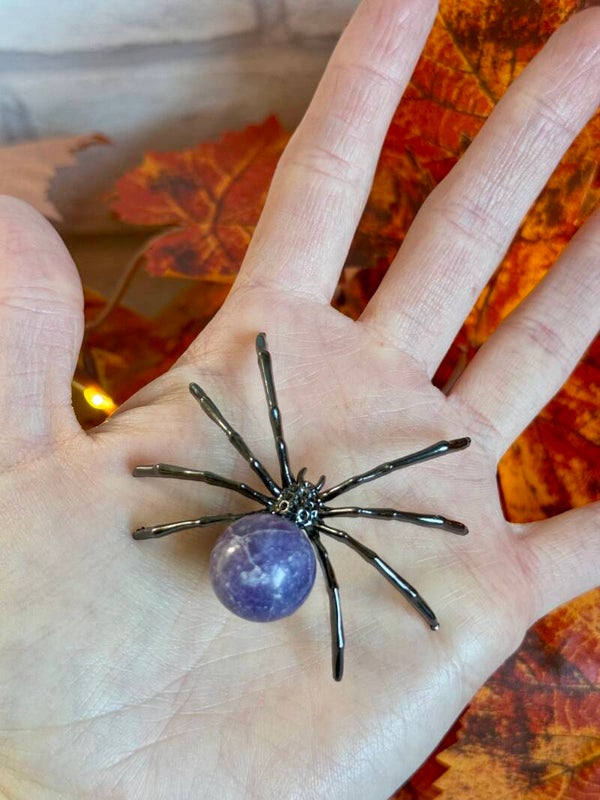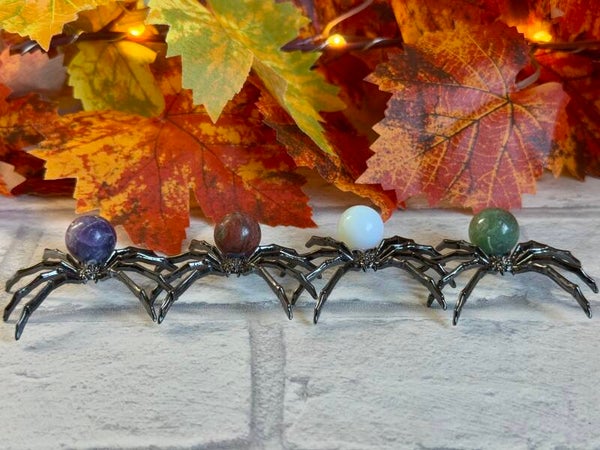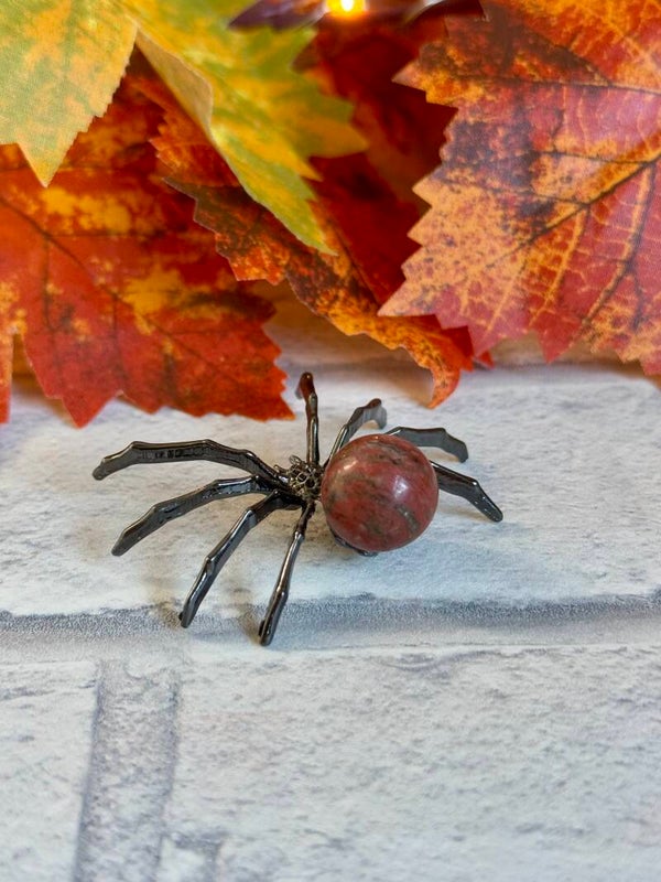 Spooky Sphere Spider Carvings in Putple Lepidolite, Red Jasper, Opalite and Ocean Jasper materials ✨