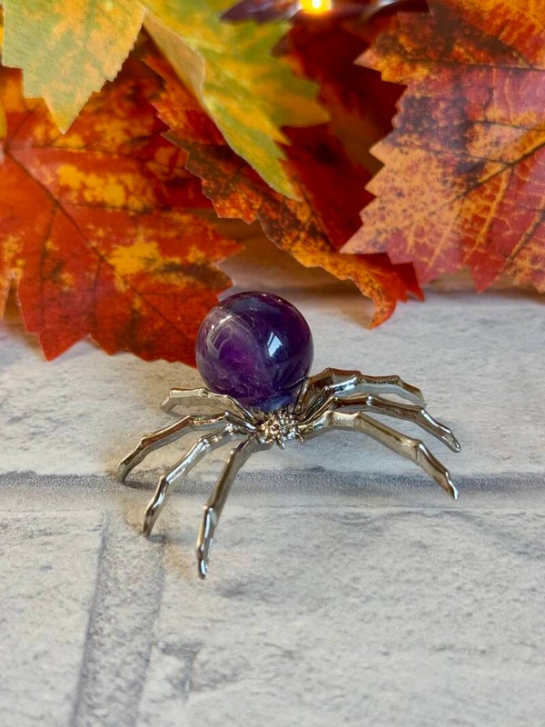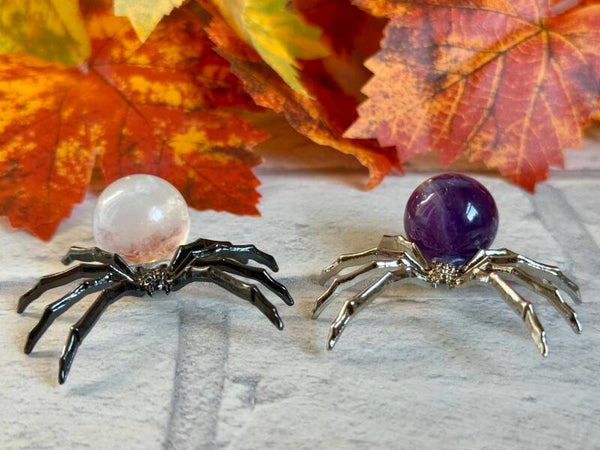 Spooky Sphere Spider Carvings in Clear Quartz and Amethyst materials ✨