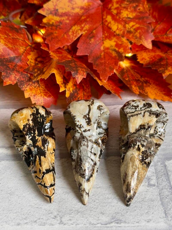 Large Bird Skull Carvings in Picture Jasper material ✨