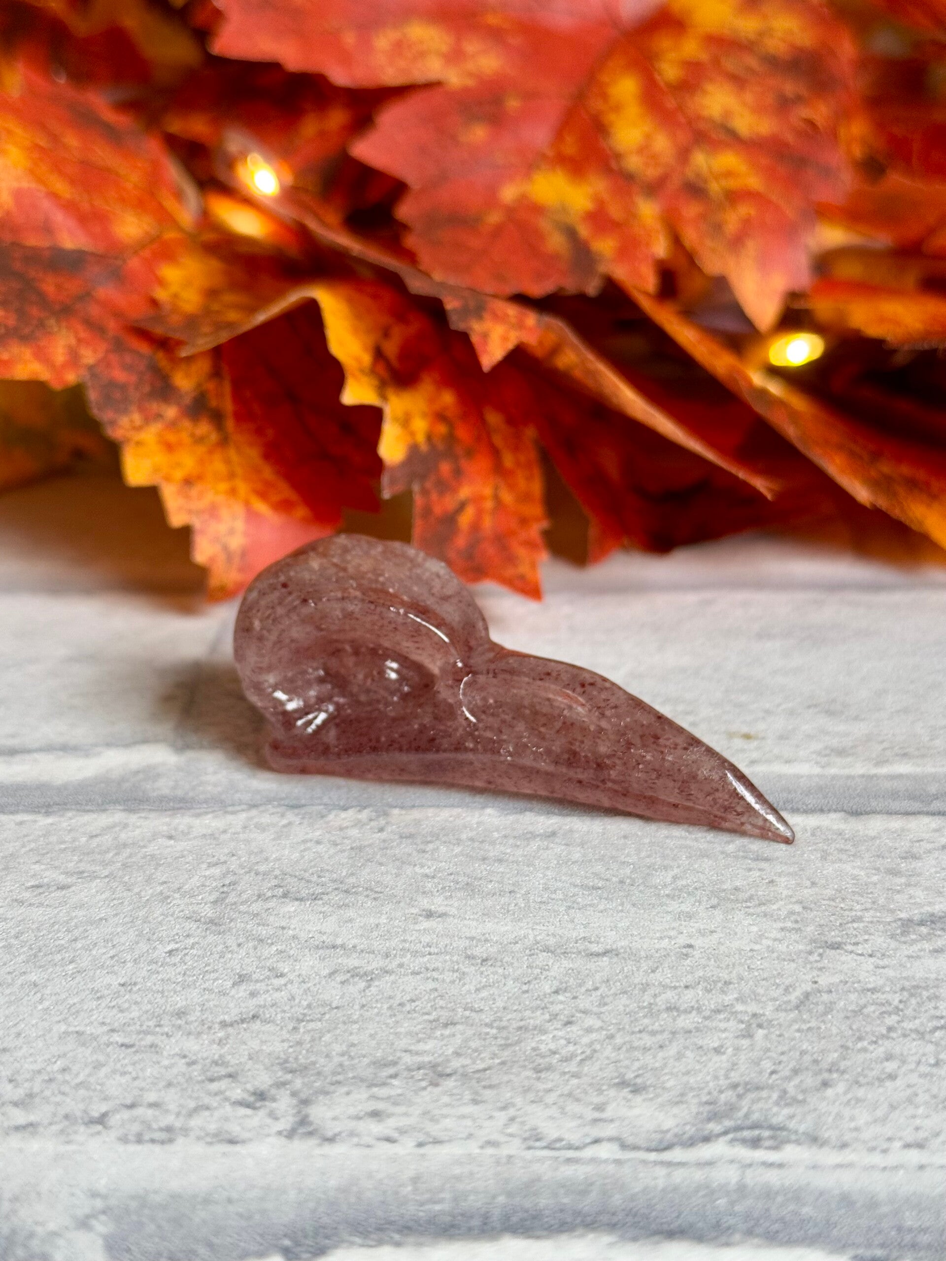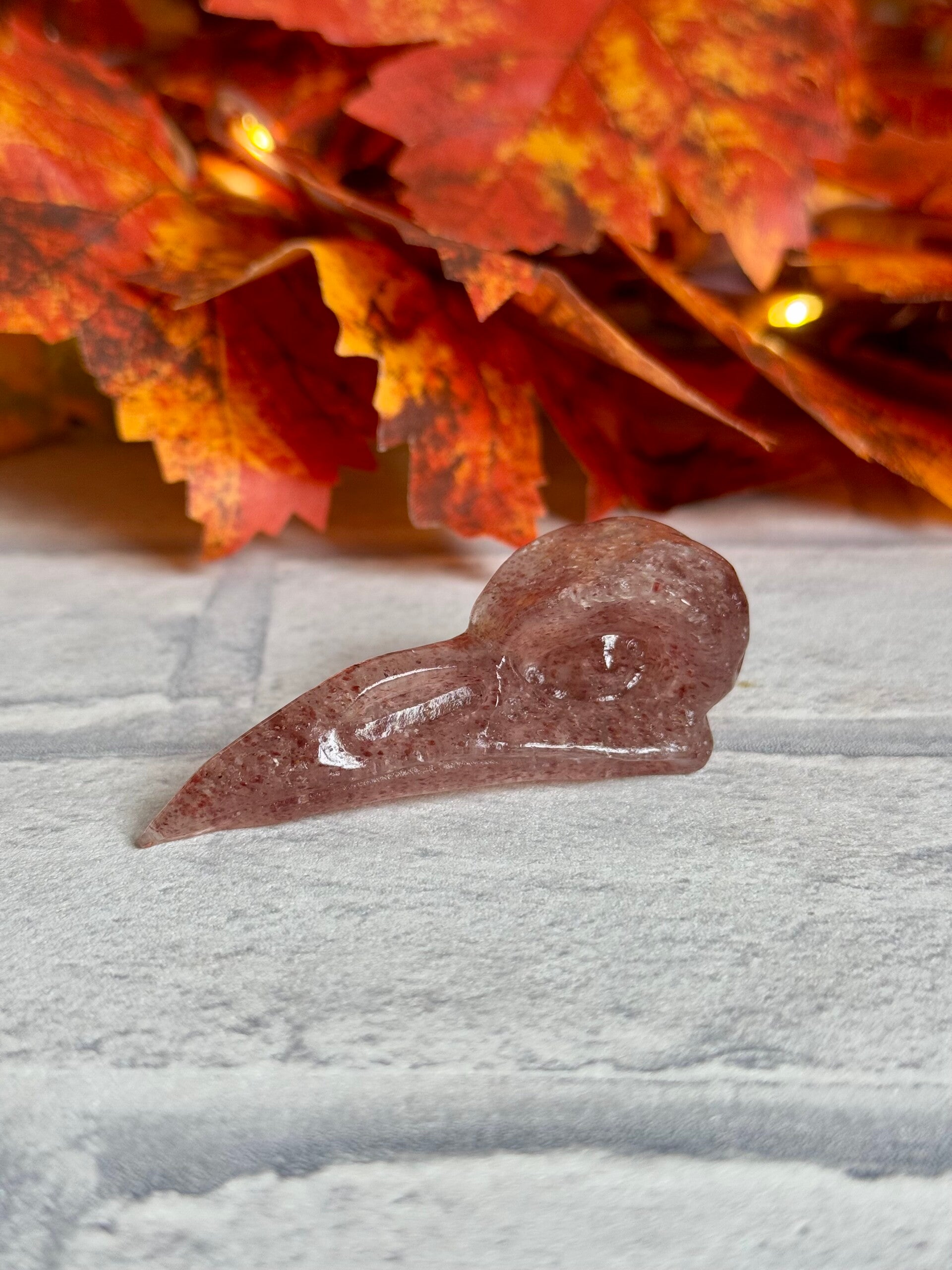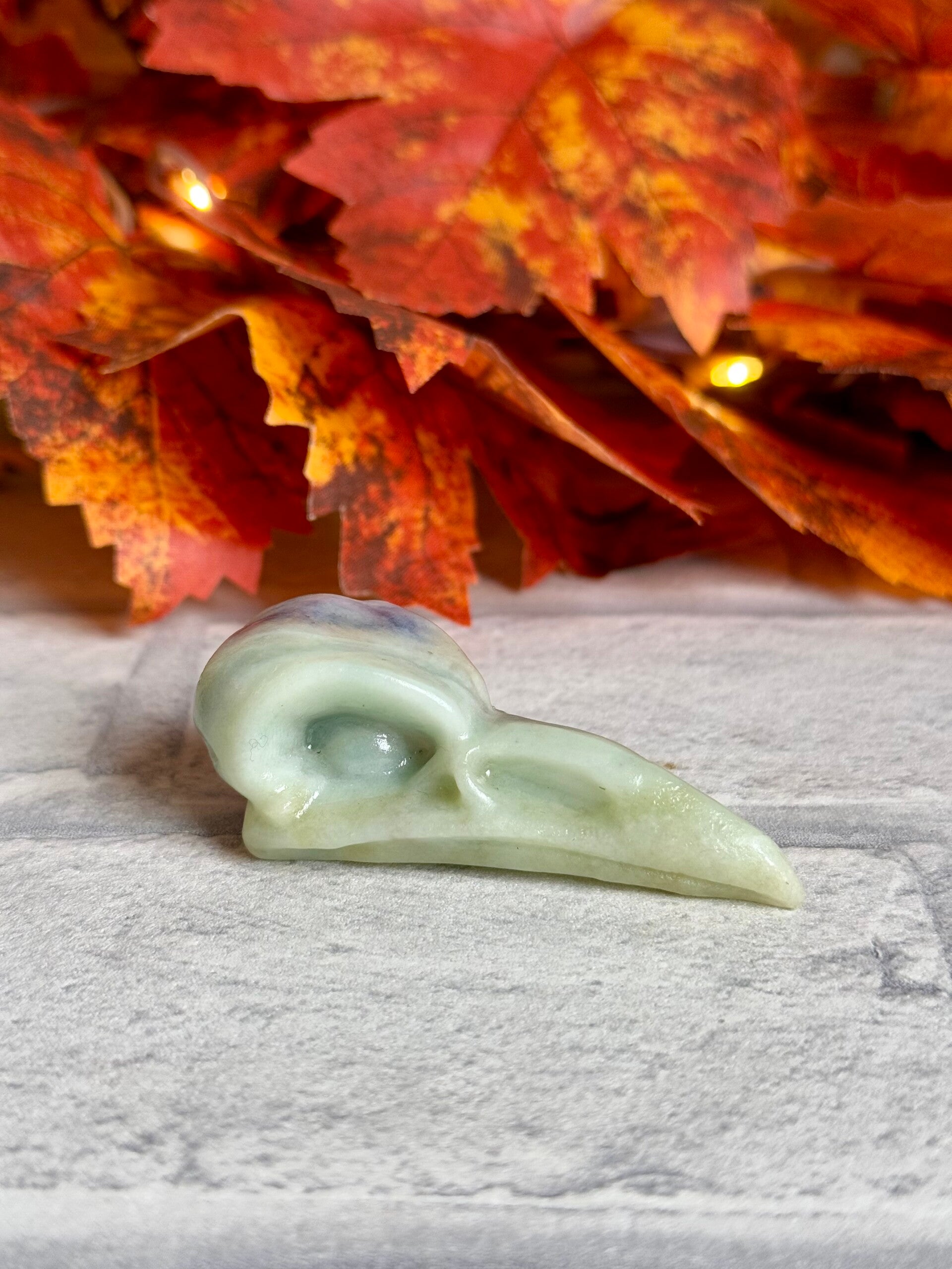 Bird Skull Carvings in Strawberry Quartz, Blue Aventurine, Caribbean Calcite Mix and Orange Calcite materials ✨