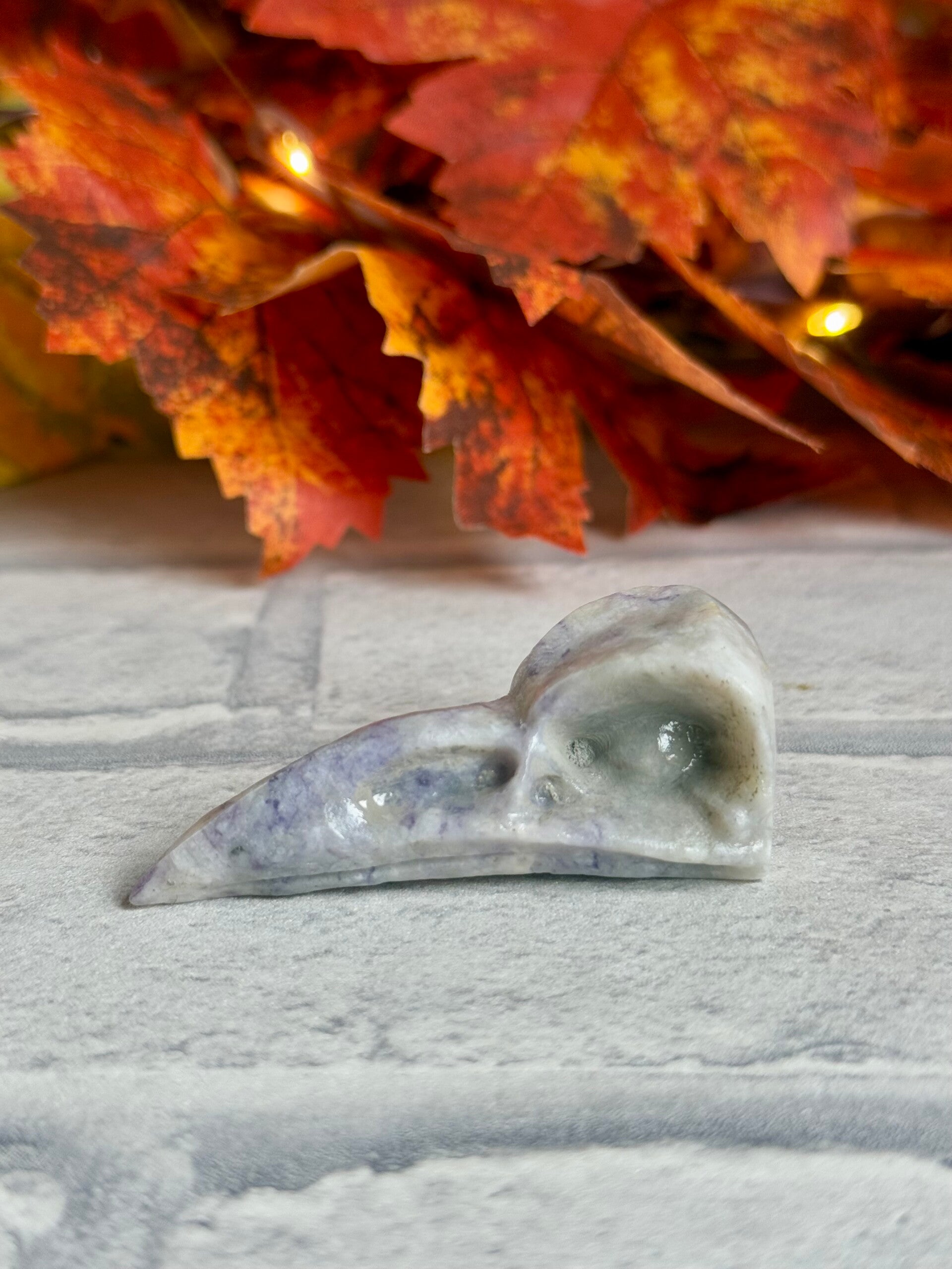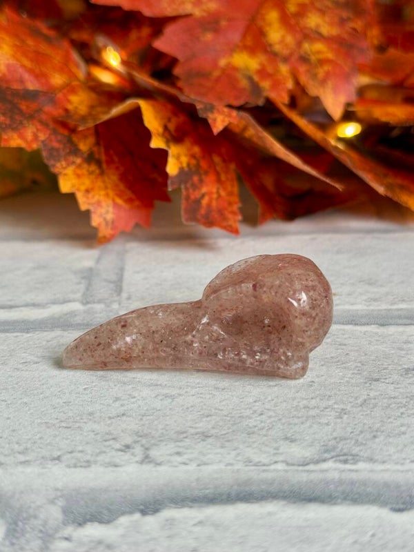 Bird Skull Carvings in Amber Calcite, Zebra Jasper, Strawberry Quartz and Tiffany Stone materials ✨