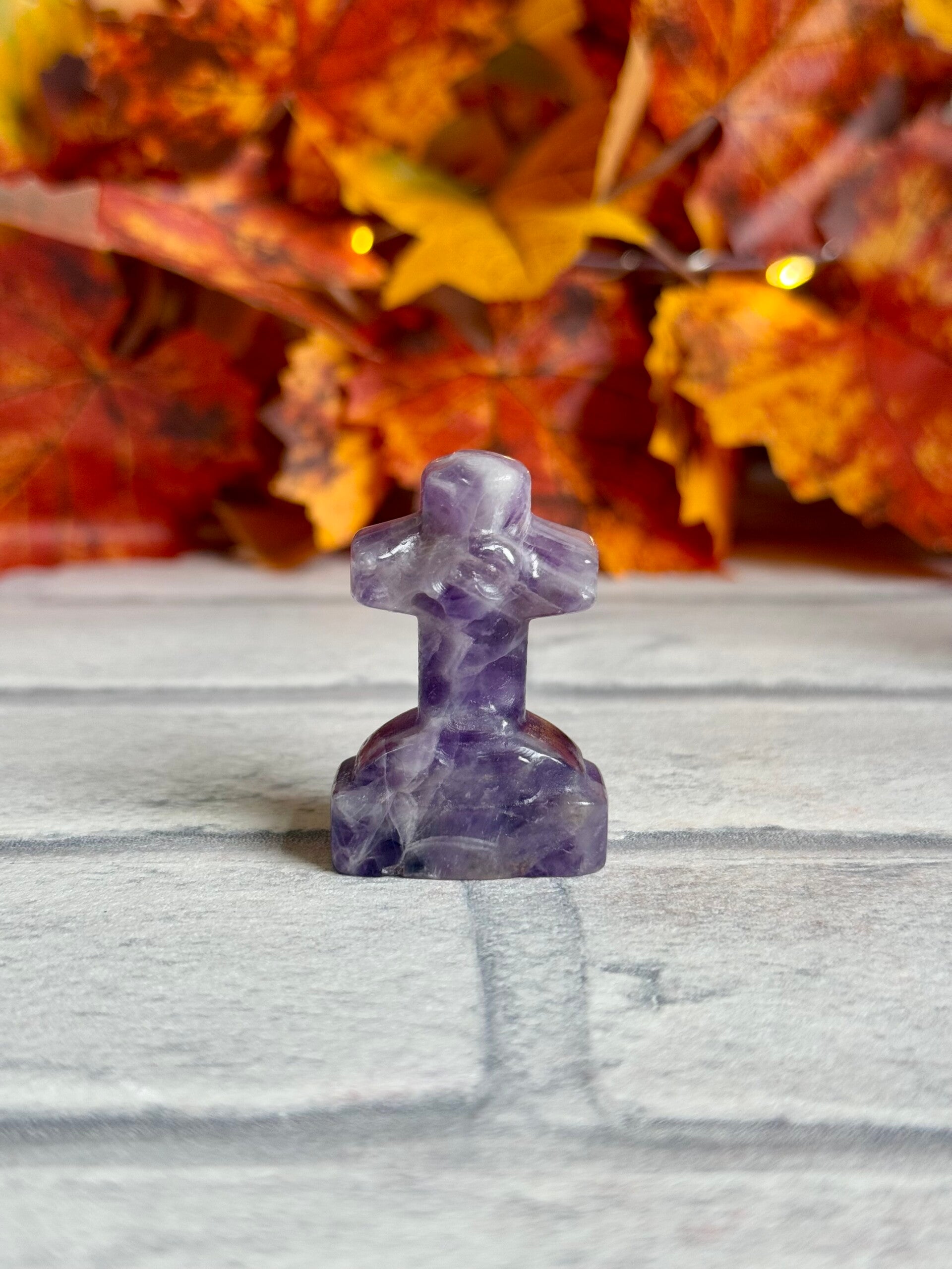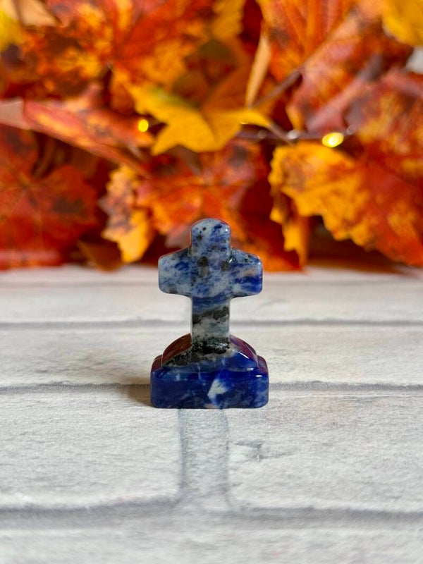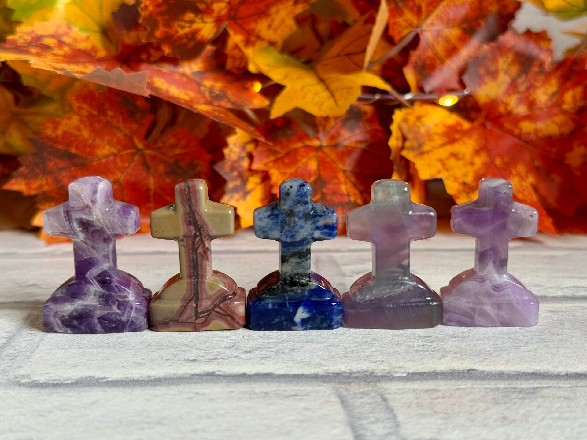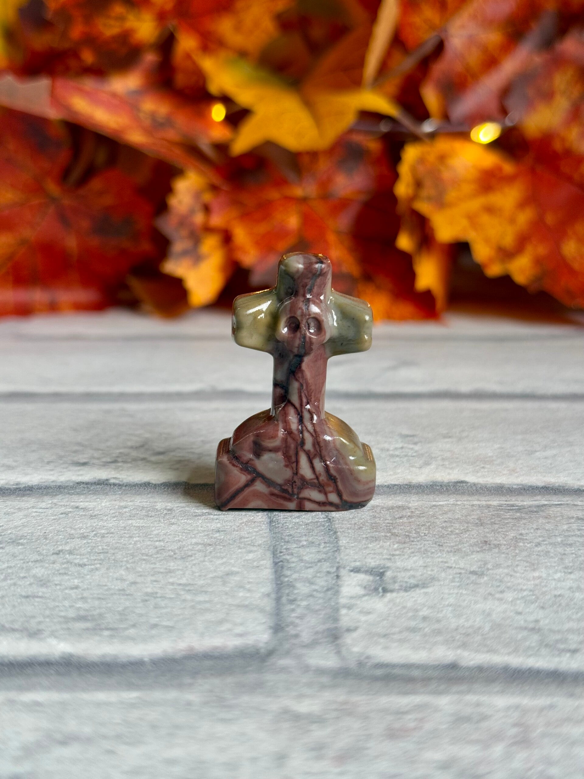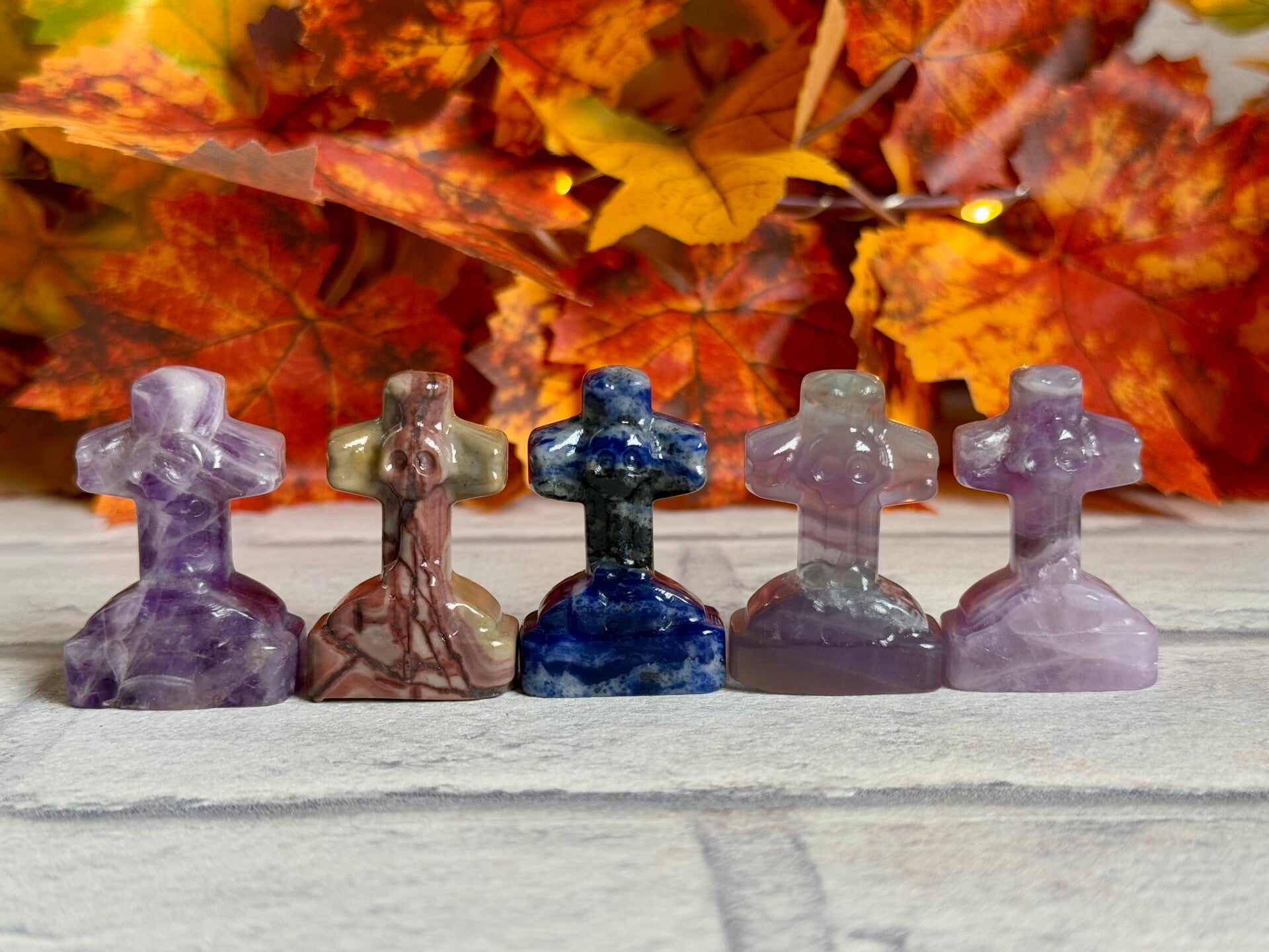 Cross With Skull Gravestone Carvings in Dream Amethyst, Picture Jasper, Sodalite and Fluorite materials ✨