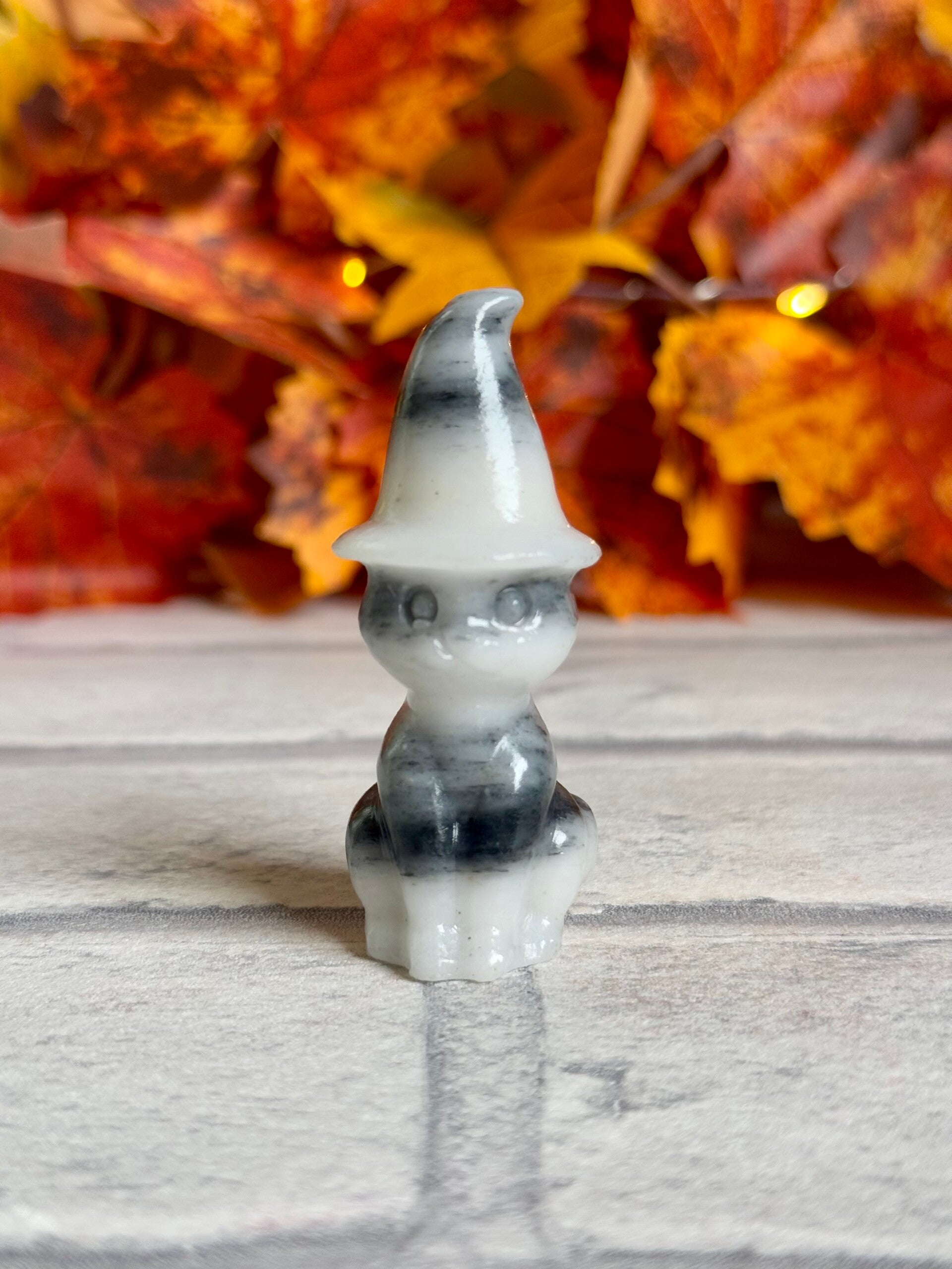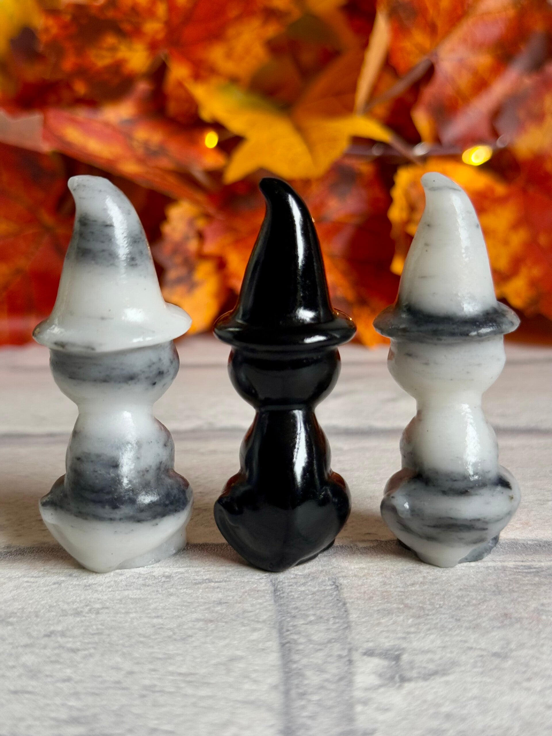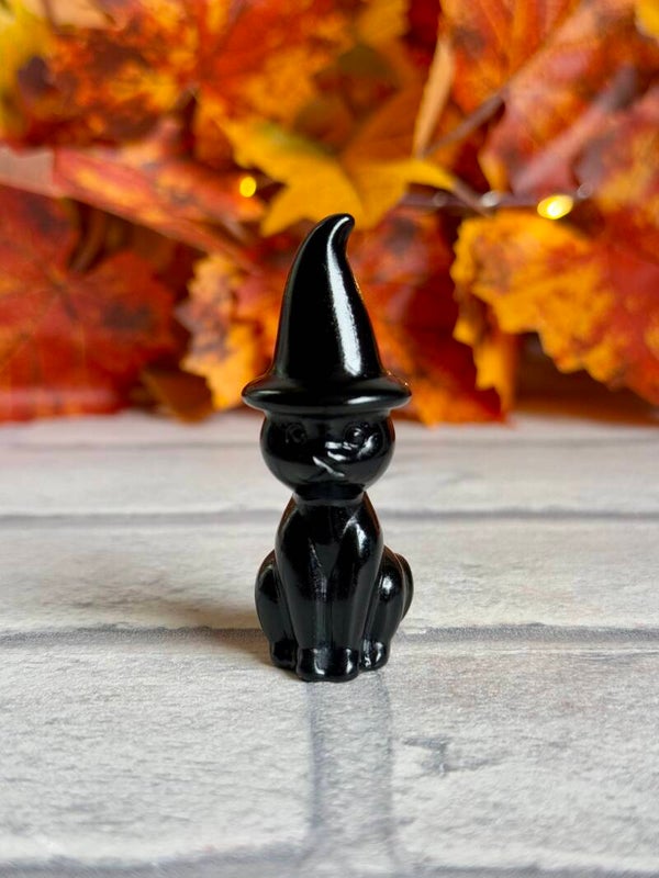 Cute Witch Cat Carvings in Taiji Stone and Black Obsidian materials ✨