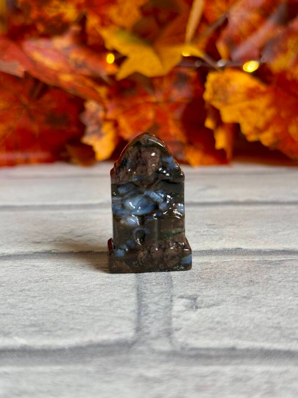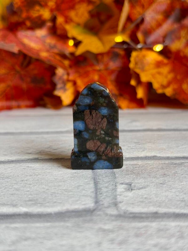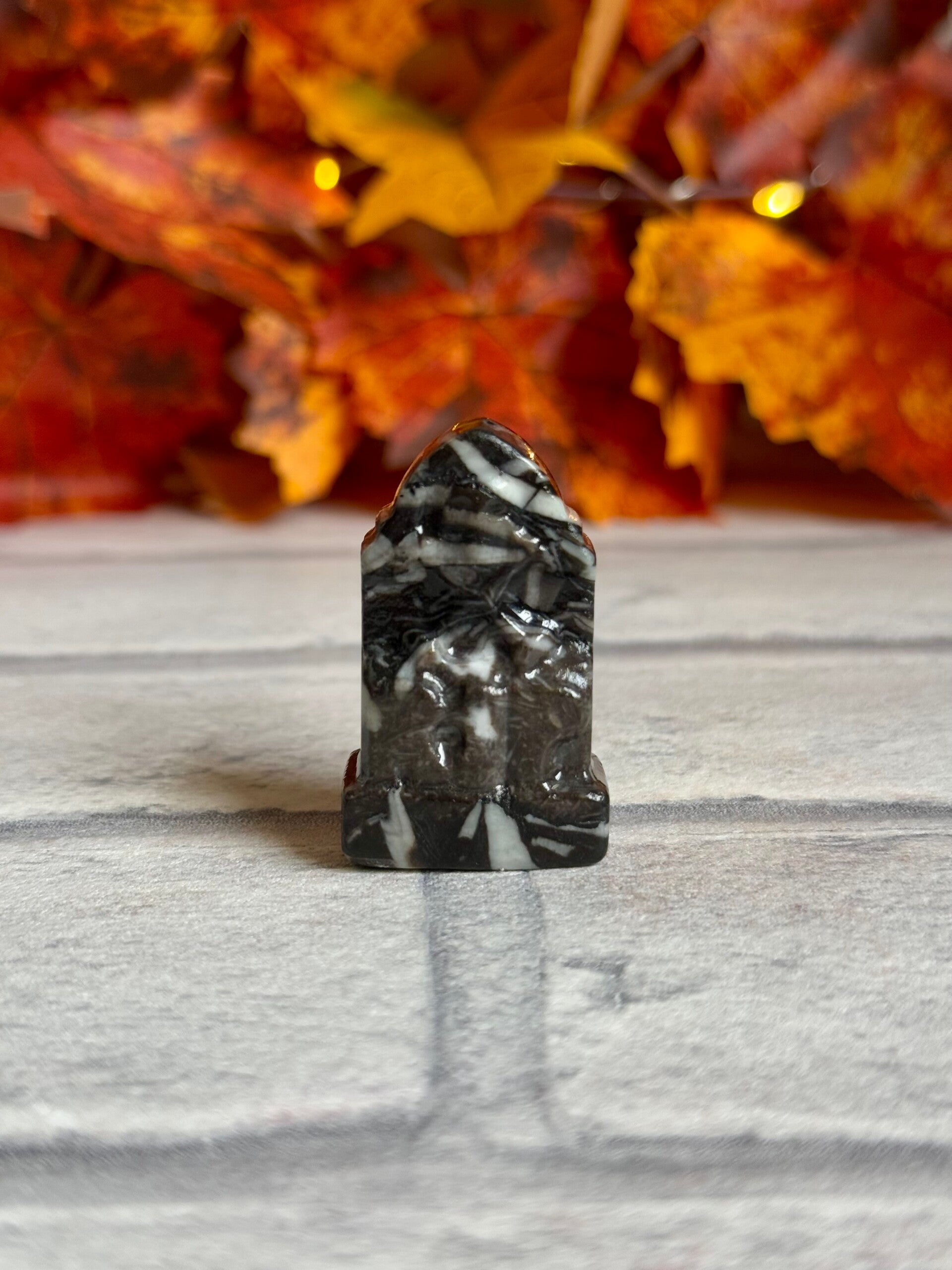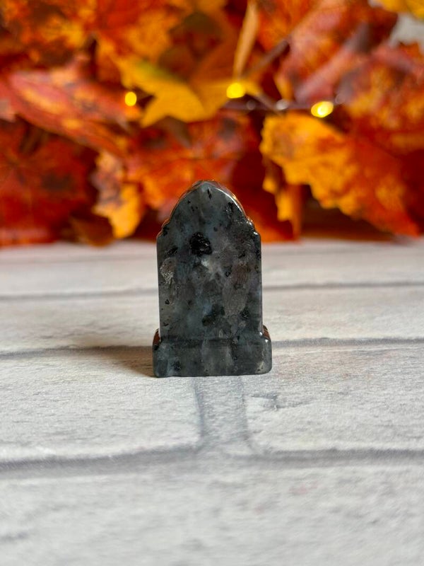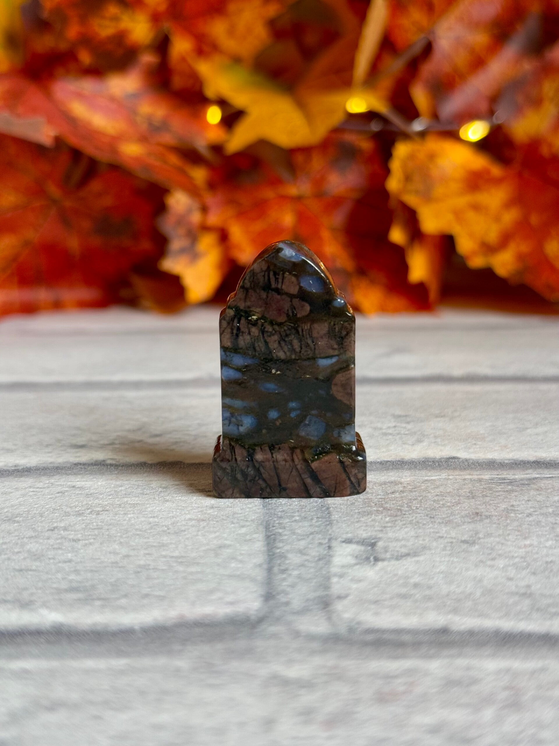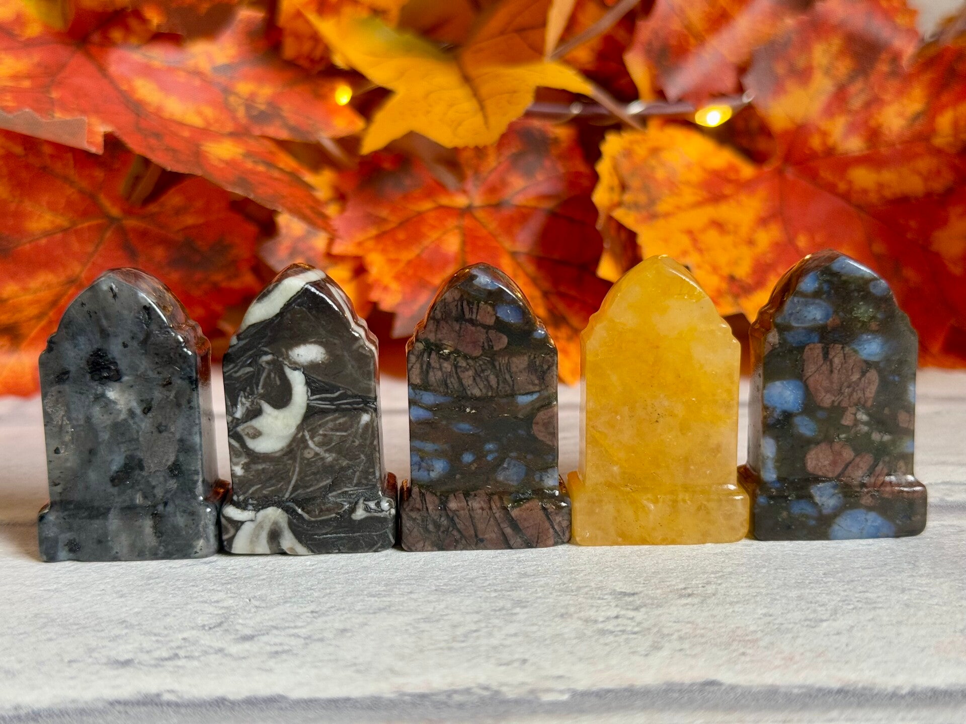 Small Gravestone Carvings in Larvikite, Fossil Jasper, Que Sera and Golden Healer materials ✨