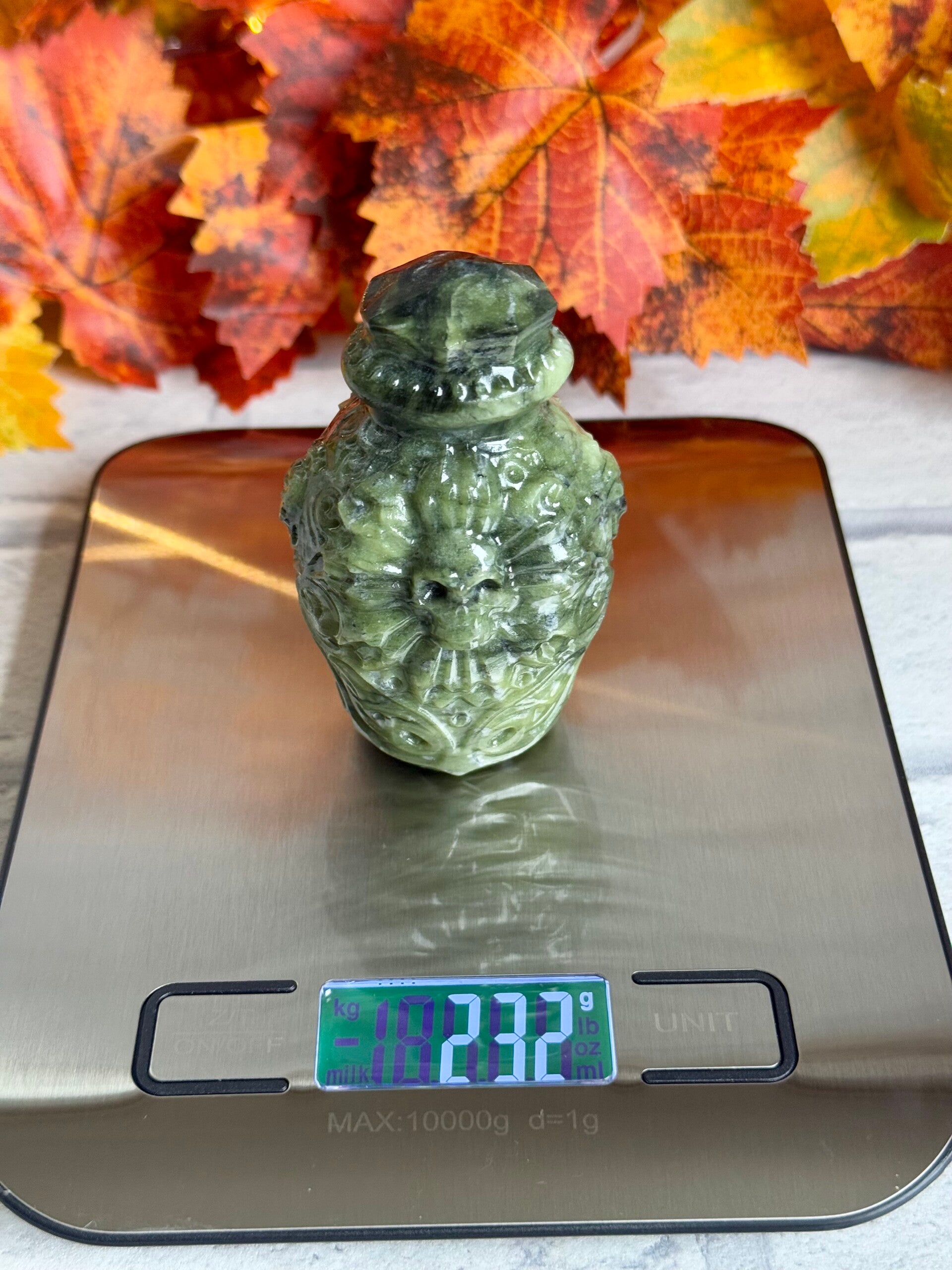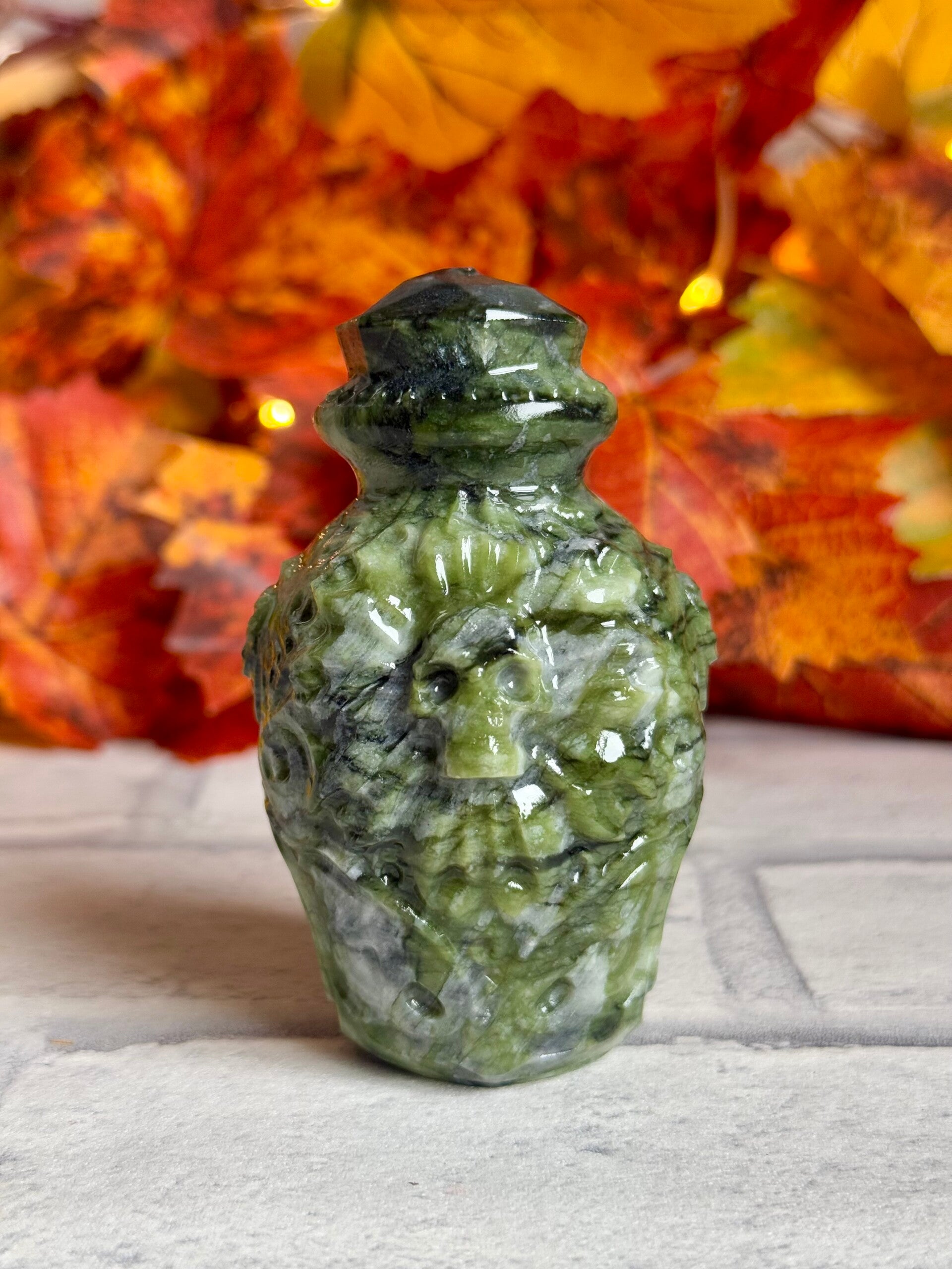 Large Green Jade Potion Bottle with beautiful carving ✨