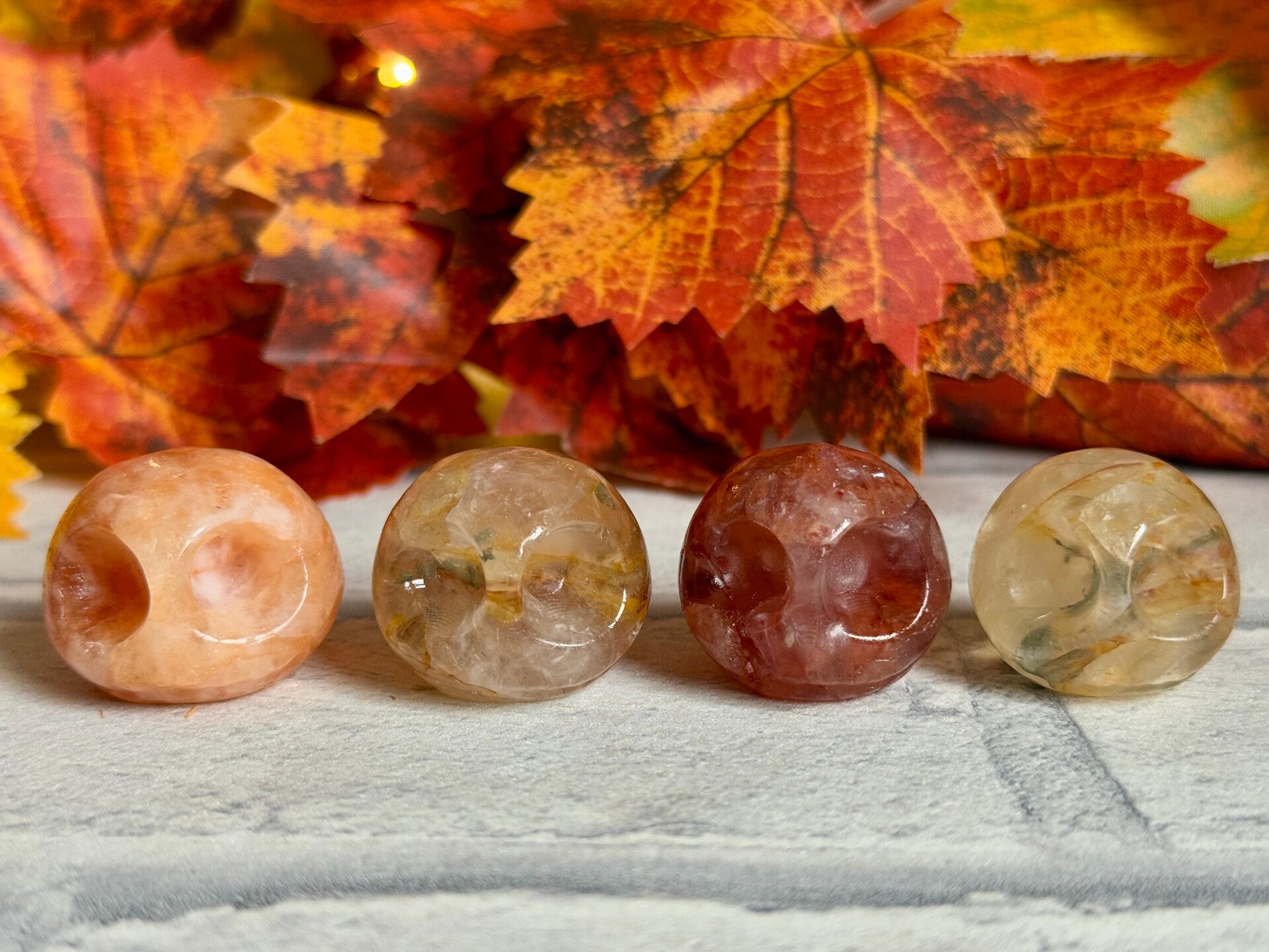 Fire Quartz Jack Head Carvings with beautiful rainbows ✨
