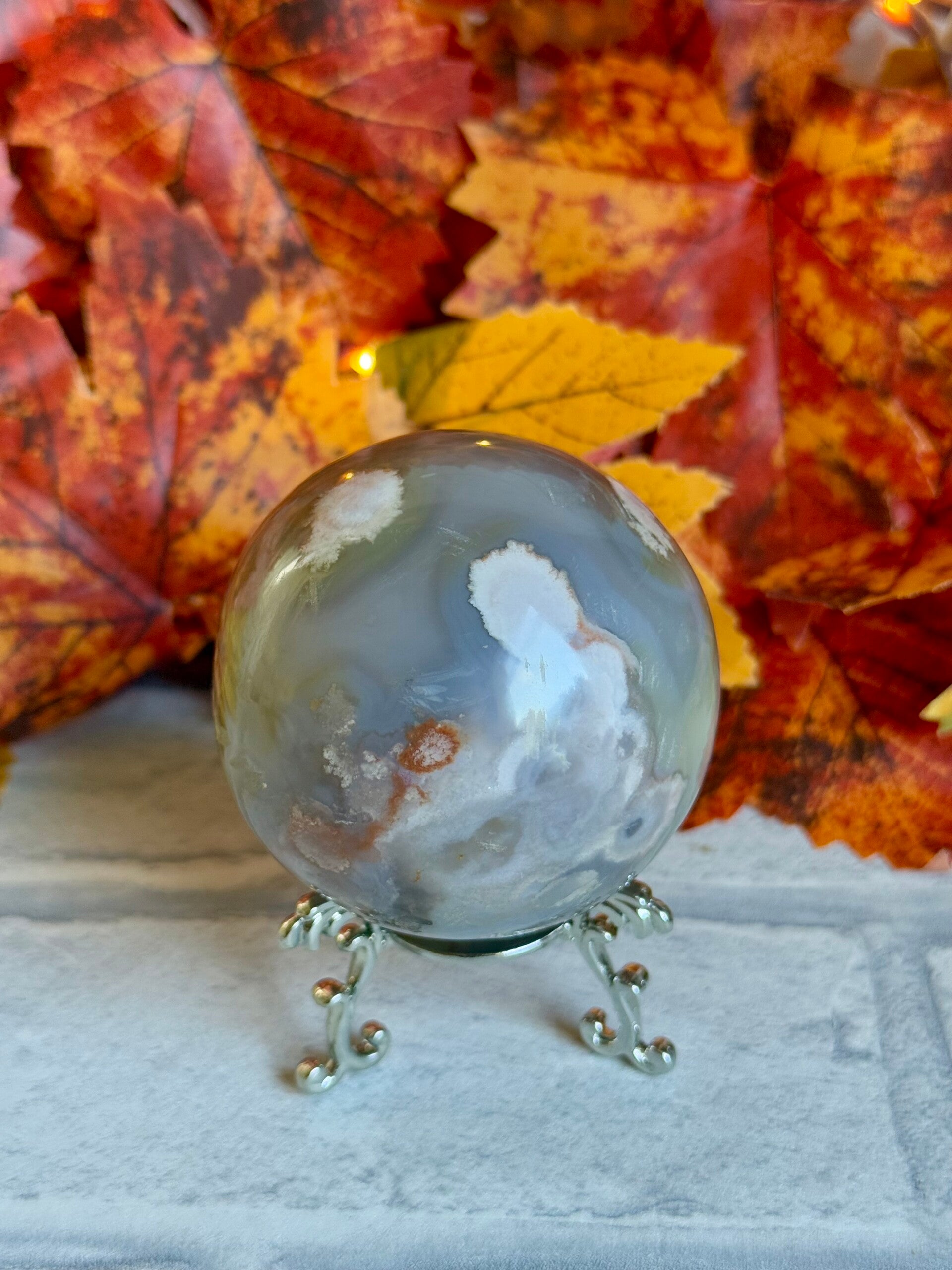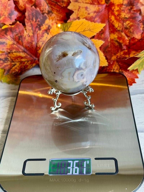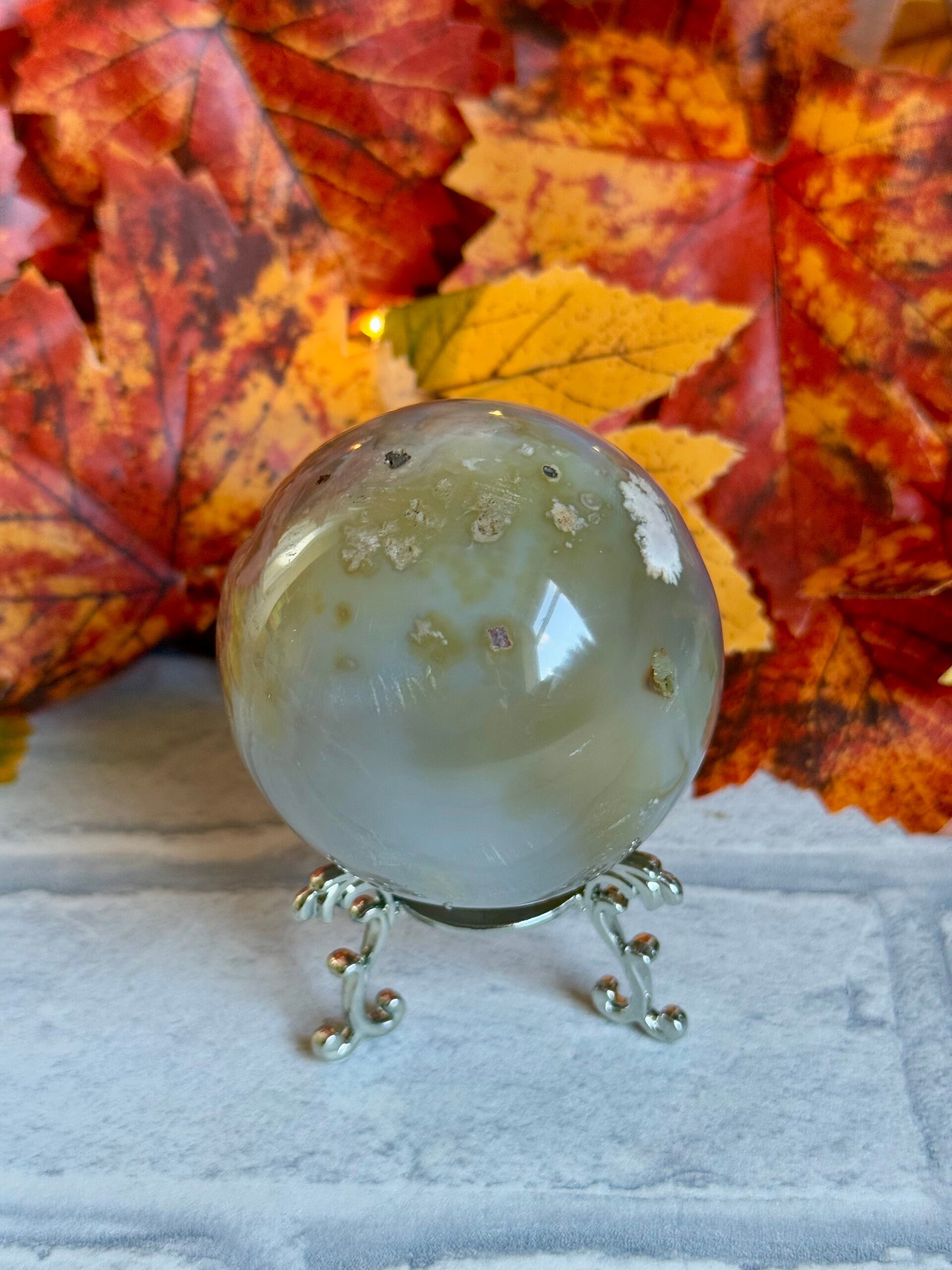 Beautiful Flower Agate Sphere with sparkly Druzy inclusions ✨