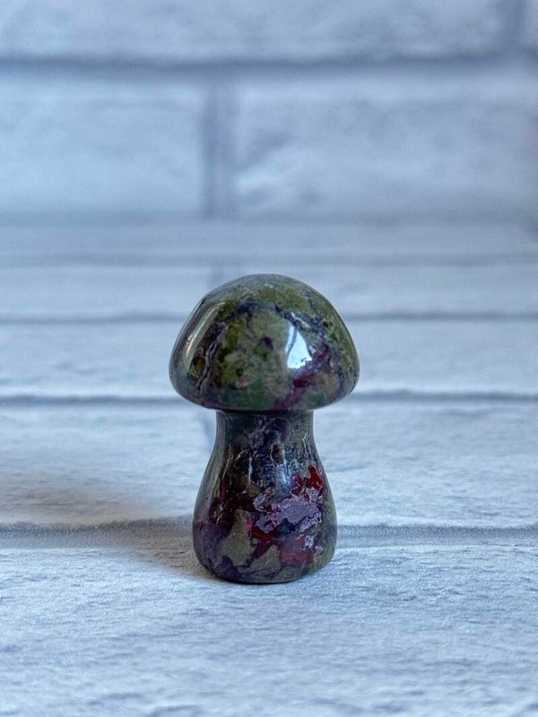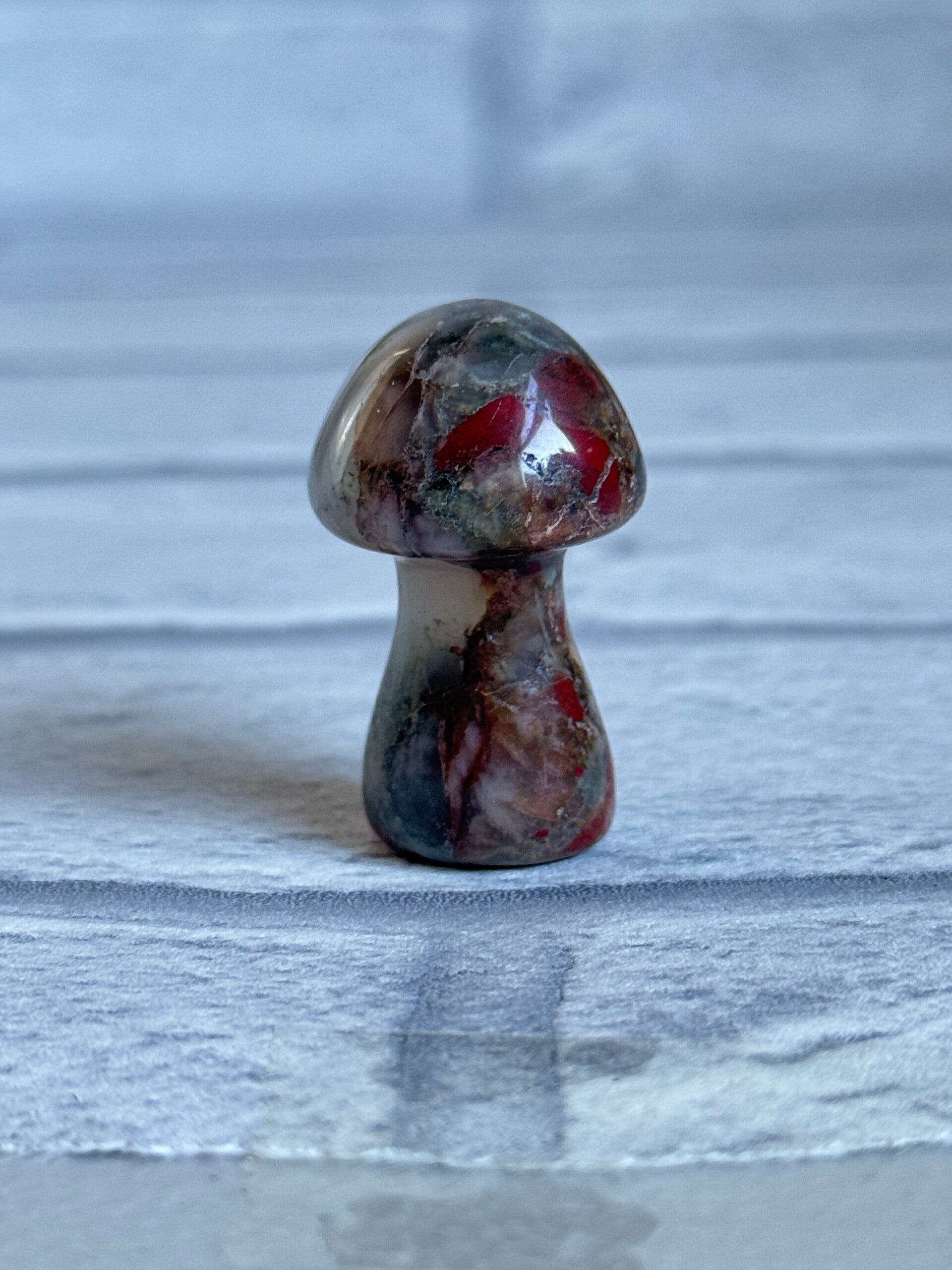 Crystal Mushroom Carvings in Dragon Bloodstone, Mahogany Obsidian, Rhodonite, Sodalite, Moss Agate, Dream Amethyst, Poppy Jasper, Green Aventurine and African Bloodstone ✨