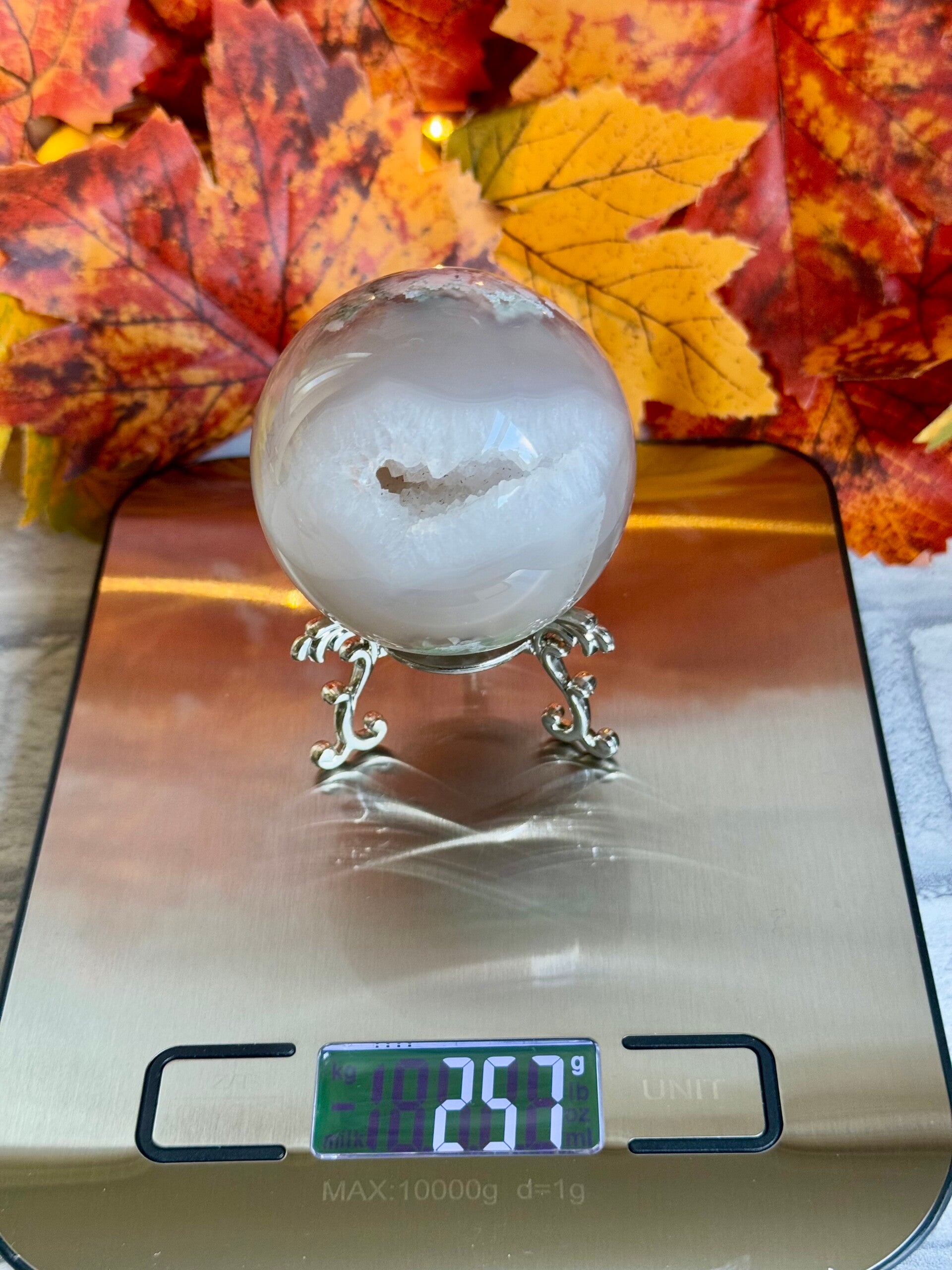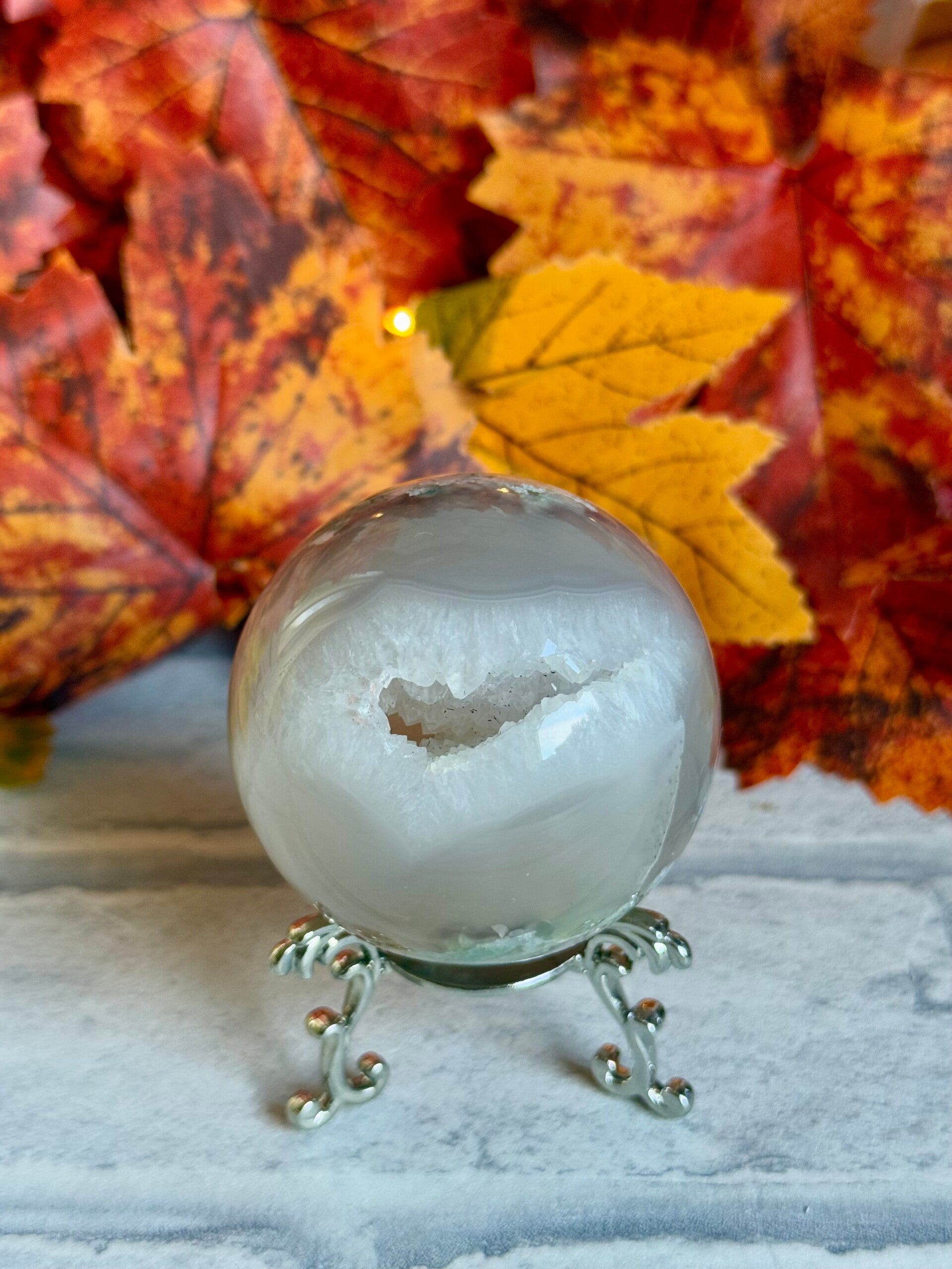Stunning Flower Agate Sphere with open Druzy mouth ✨