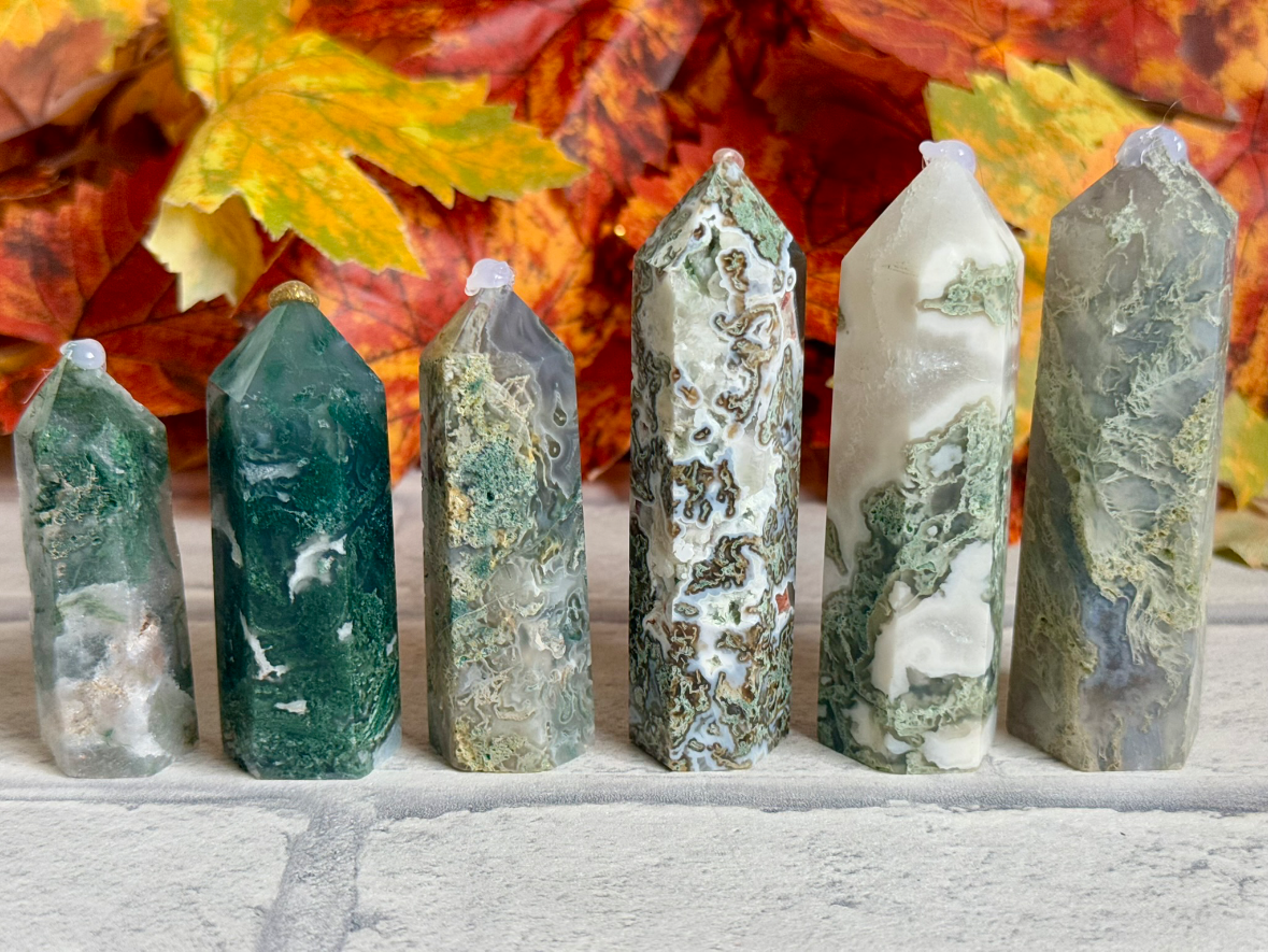 Beautiful Moss Agate Towers all individually stunning and unique ✨