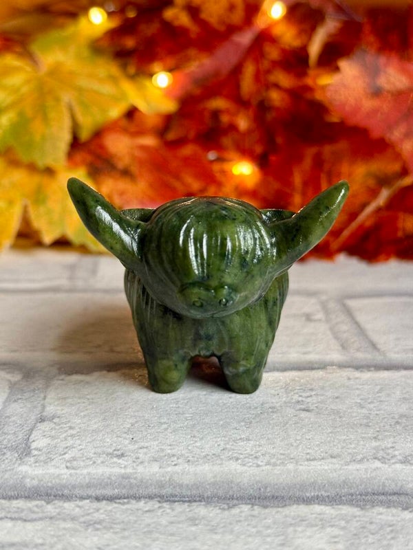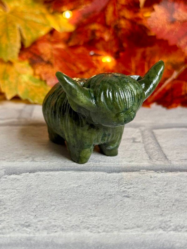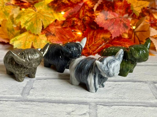 Cute Large Highland Cow Carvings in Pyrite, Taiji Stone and Green Jade materials ✨